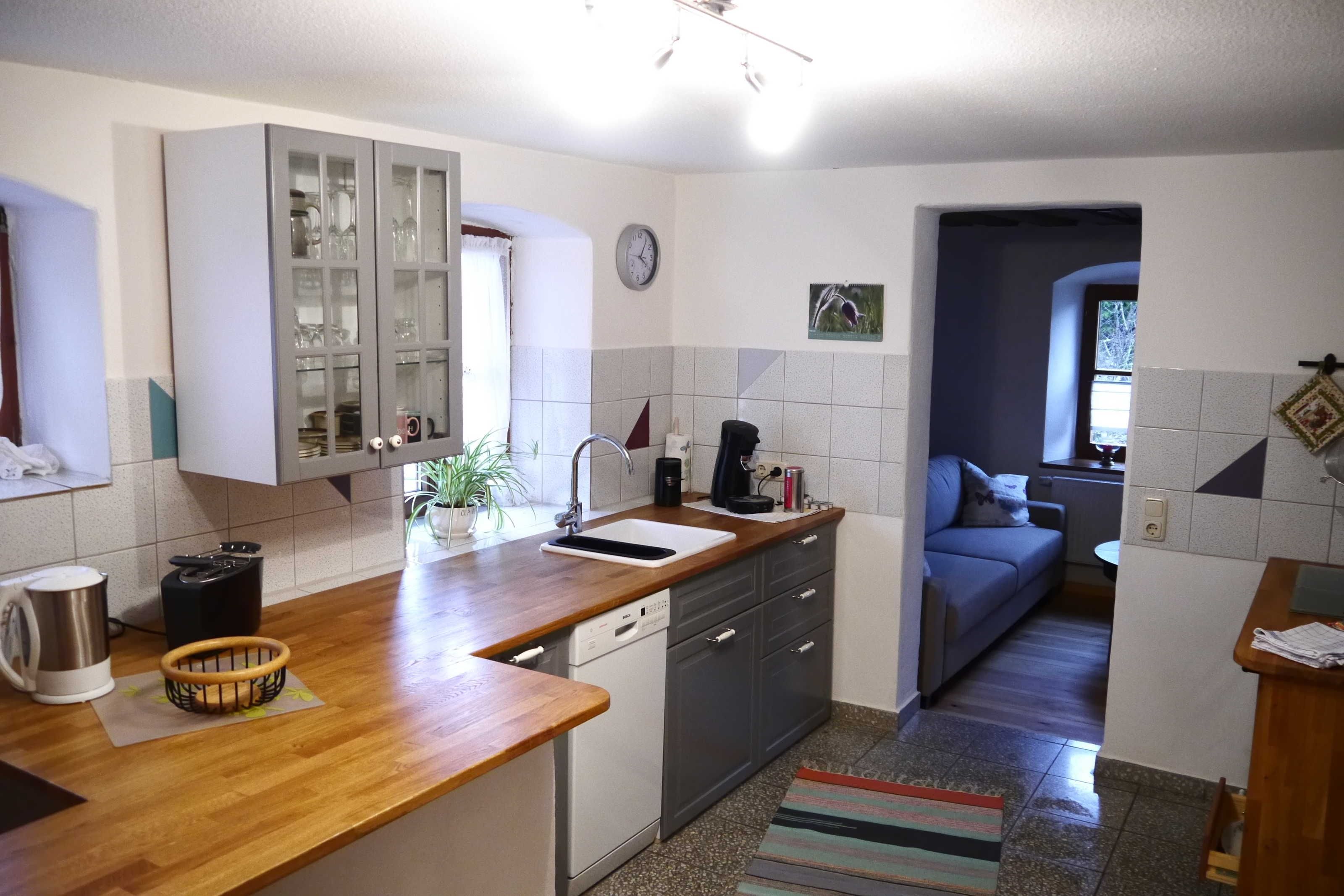 • Die Kücheneinrichtung verfügt über eine Spülmaschine, Backofen mit Ceranfeld, Senseo-Kaffeemaschine, elektr. Brotschneidemaschine, Kühlschrank mit Gefrierfach und Waschmaschine;