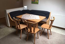 Die Ferienwohnung Bergblick befindet sich im 2. Stock des Hauptgebäudes. Auf 95 m² verteilen sich eine Wohnküche, 3 Doppelzimmer sowie Dusche und WC in getrennten Räumen. Die Küche ist mit Kühl-Gefrierschrank, Backofen und Herd sowie Geschirrspüler ausgestattet. Zur Unterhaltung ist ein moderner Flachbildfernseher installiert. Auch in dieser Wohnung ist ein Doppelzimmer in Vollholz verkleidet und sorgt somit für ein unvergleichbares Schlafklima. Vom südlich ausgerichteten Balkon bietet sich ein atemberaubender Ausblick auf die Zillertaler Bergwelt mit der hoch aufragenden Gerlossteinwand.