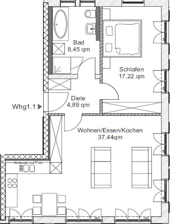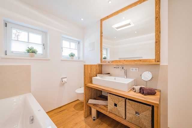 • Bad mit WC, ebenerdiger Dusche und Badewanne
