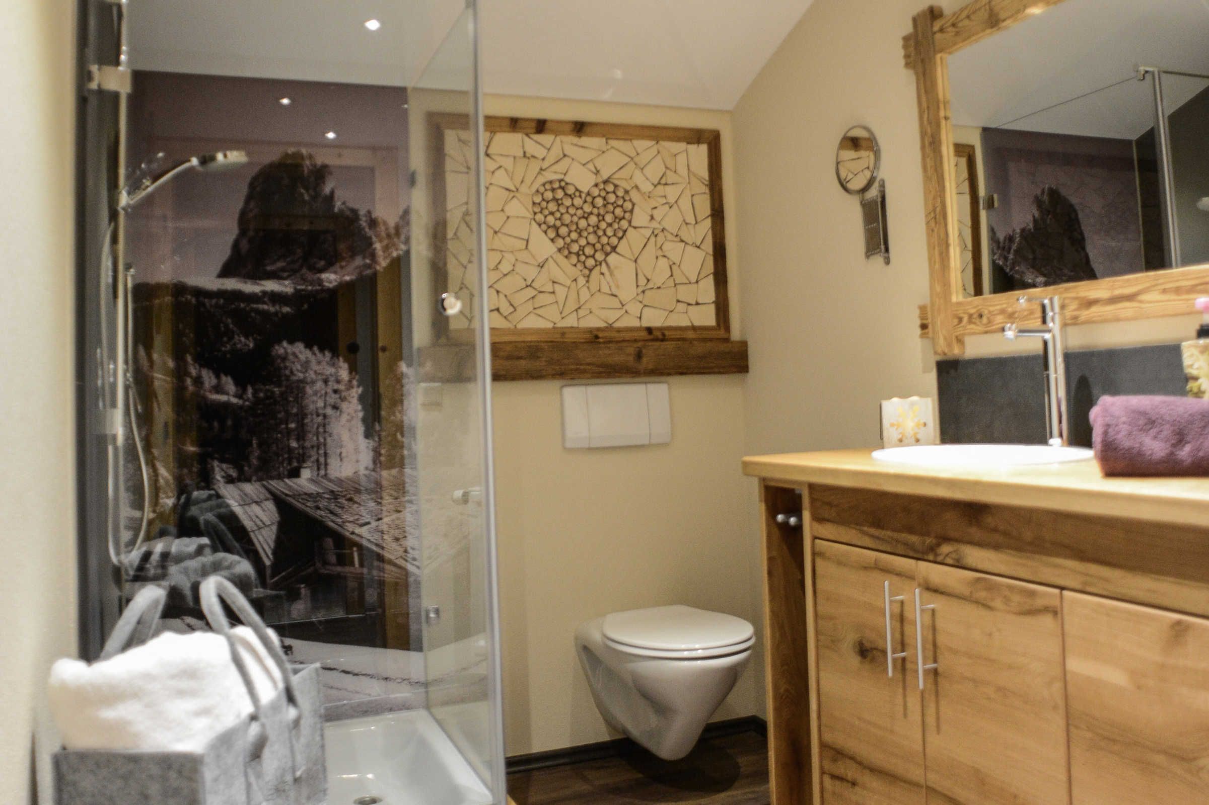Unser komplett renoviertes Bio Mountain Appartement besticht durch Fichte Altholzmöbel im Schlafzimmer mit einem beleuchteten Hintergrundbild und nochmaligem Flat-TV. Der Wohnraum ist in Eiche Alt mit hochwertigen Lodenstoffen gehalten. Ausgestattet mit Essecke, Zierkachelofen, Flat-TV, Kuschelcouch, kostenloser Internetzugang, komplett eingerichtete stylische Küche der Firma Nolte mit Backofen in der Höhe, Induktionskochfeld, Mikrowelle, Kaffeemaschine, Wasserkocher, Toaster, Eierkocher usw., Dusche/WC/Föhn und Kosmetikspiegel. Exklusive Echtholzparkettböden in Eiche sind allergikerfreundlich. Idealer Ort für Paare, die heimelige Architektur lieben. Herrlicher Ausblick auf unseren Hausberg Sorgschrofen,  sowie in die umliegende Allgäuer und Tiroler Bergwelt.