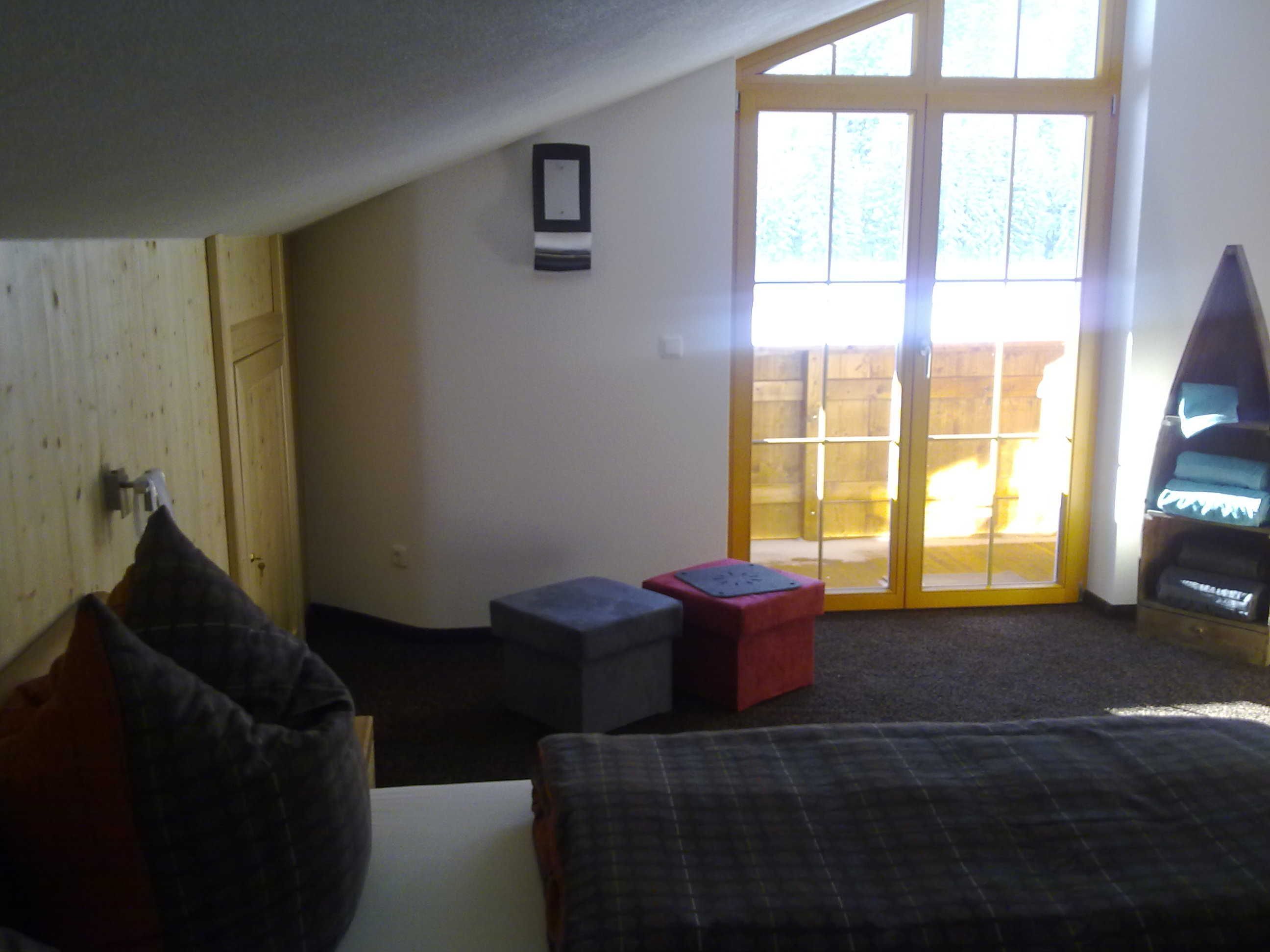 Die Wohnung verfügt über einen Südbalkon mit Sitzmöbel und Liegestuhl.