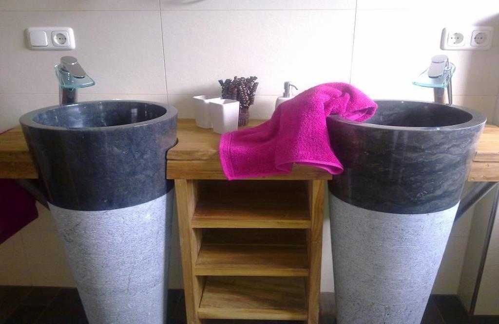 1 großzügiges Bad mit Doppelwaschtisch, Dusche, WC und Badewanne
