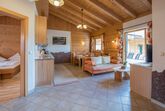 Sehr gemütlicher Wohnbereich mit Sat-TV, voll ausgestattete Küche mit Geschirrspüler, 2 getrennte Schlafräume, luxuriöses Badezimmer mit DU/WC und Garderobe. Der Eingang ist ebenerdig mit großer Terrasse mit schönem Blick auf den See und die Berge.