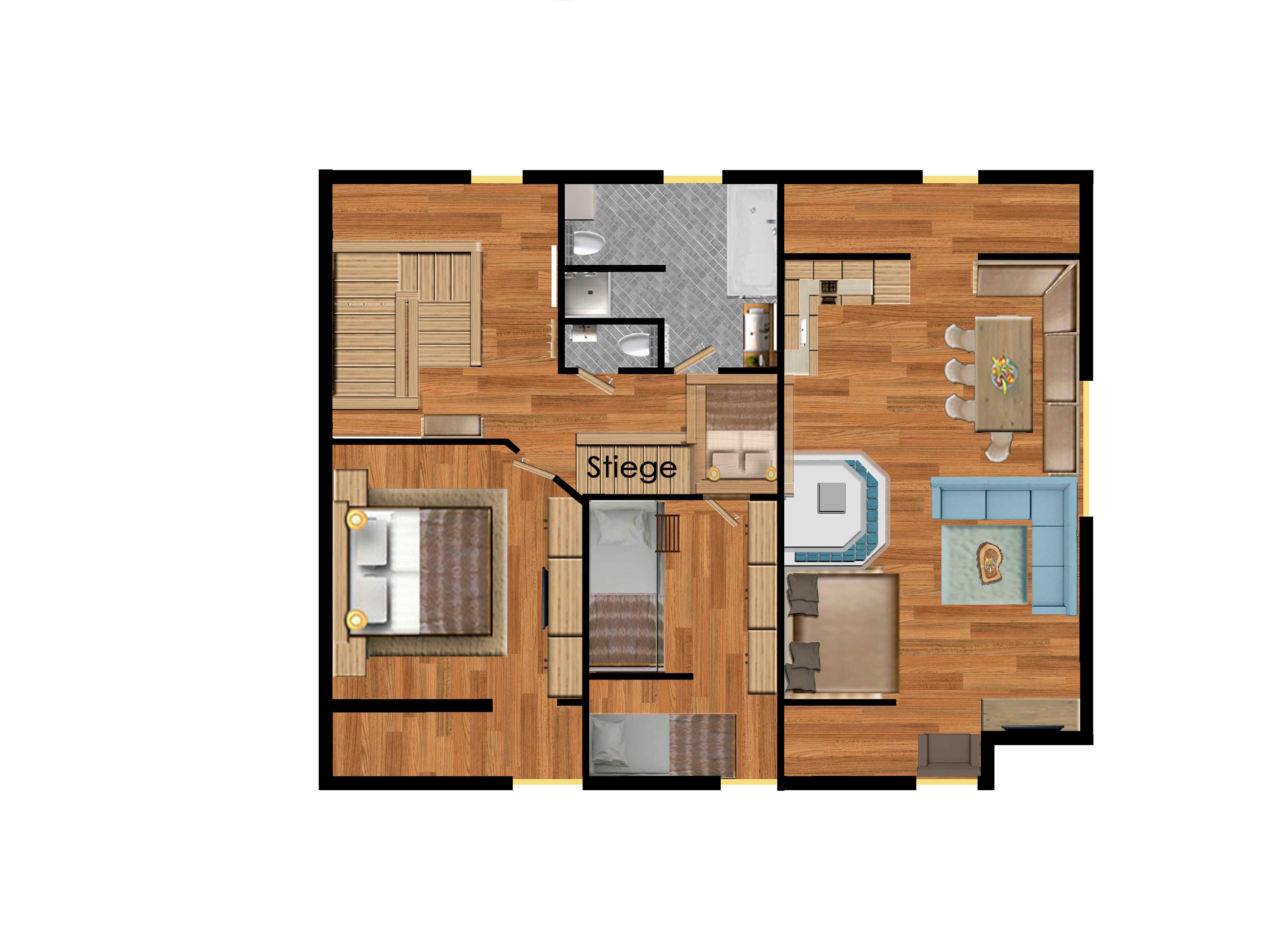 Auf 90 qm Wohnfläche befinden sich ein Elternschlafzimmer, ein Kinderschlafzimmer mit Stockbett sowie einem zusätzlichen Einzelbett, eine Dachgallerie mit einem Doppelbett sowie ein offener Wohnbereich in moderner Altholzoptik mit einer modernst eingerichteten Küche. Pepi´s Landhaus wird ihnen traumhafte und unvergessliche Tage bereiten...