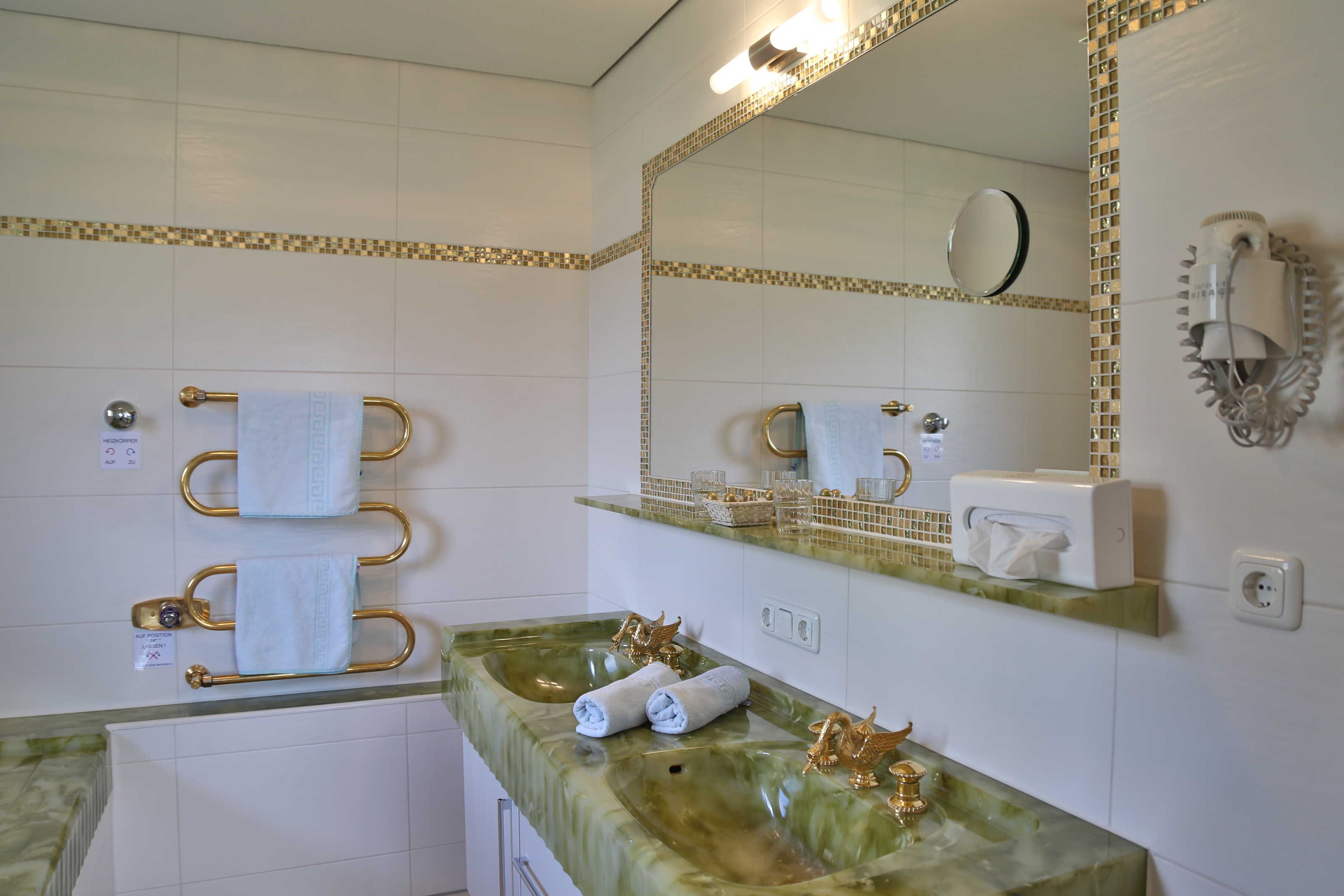 Bad, Dusche, Doppelwaschbecken, Fön