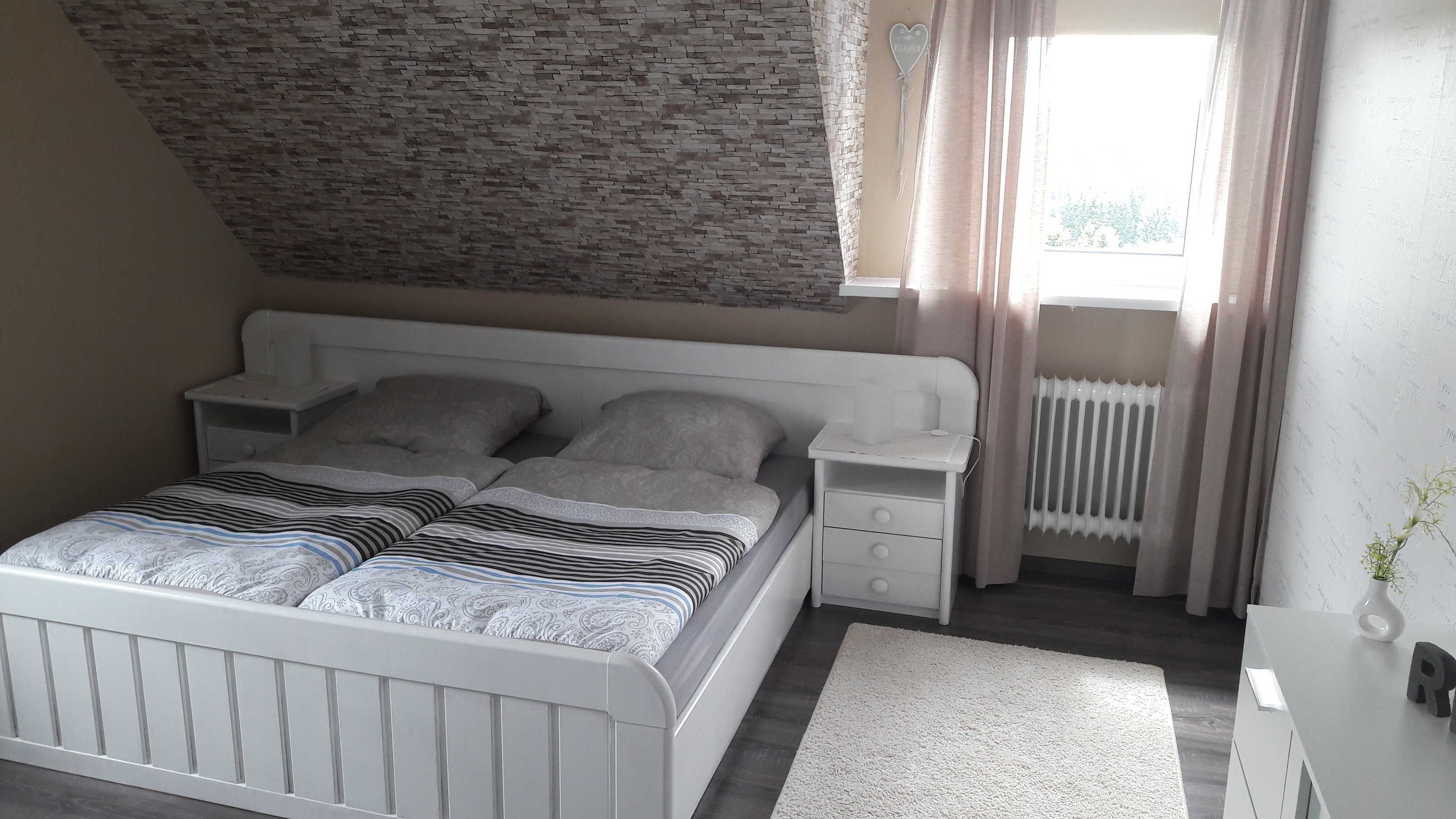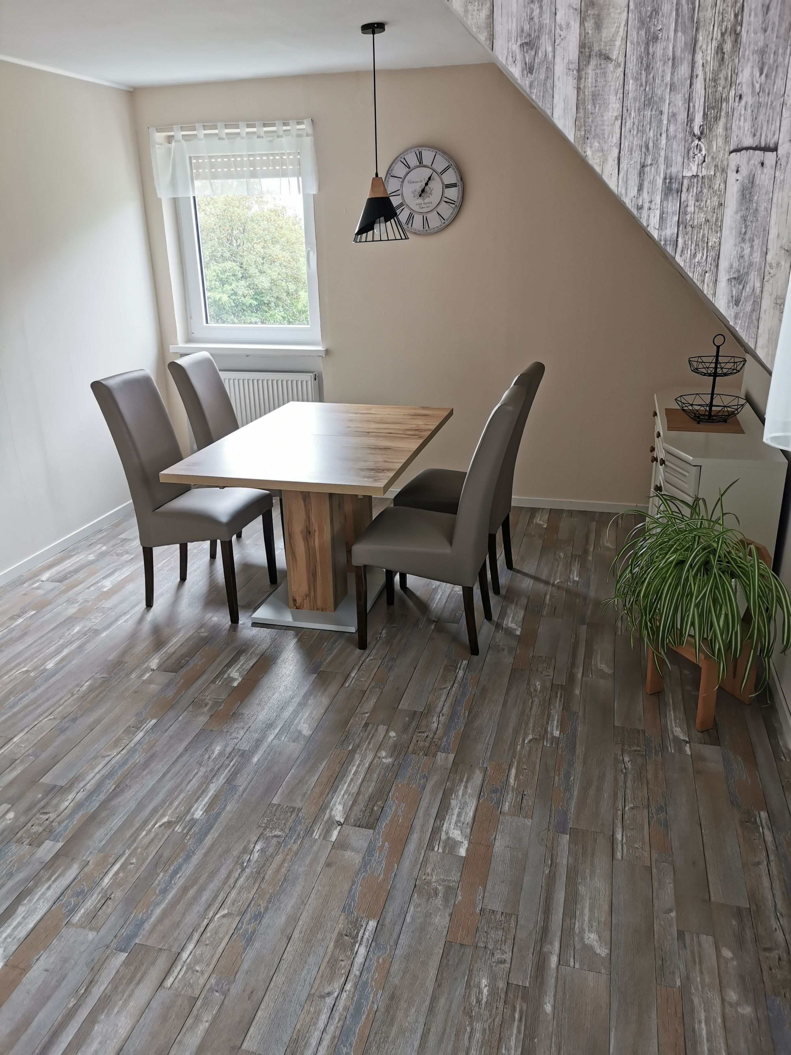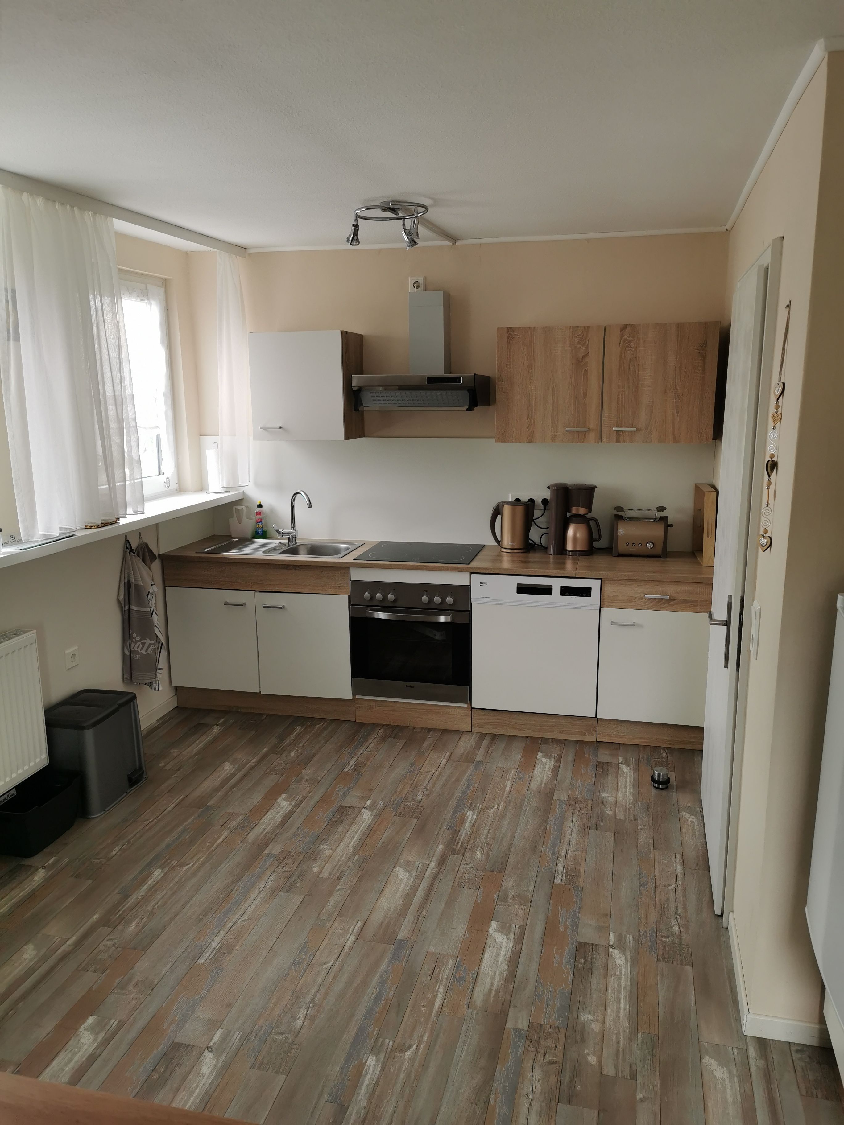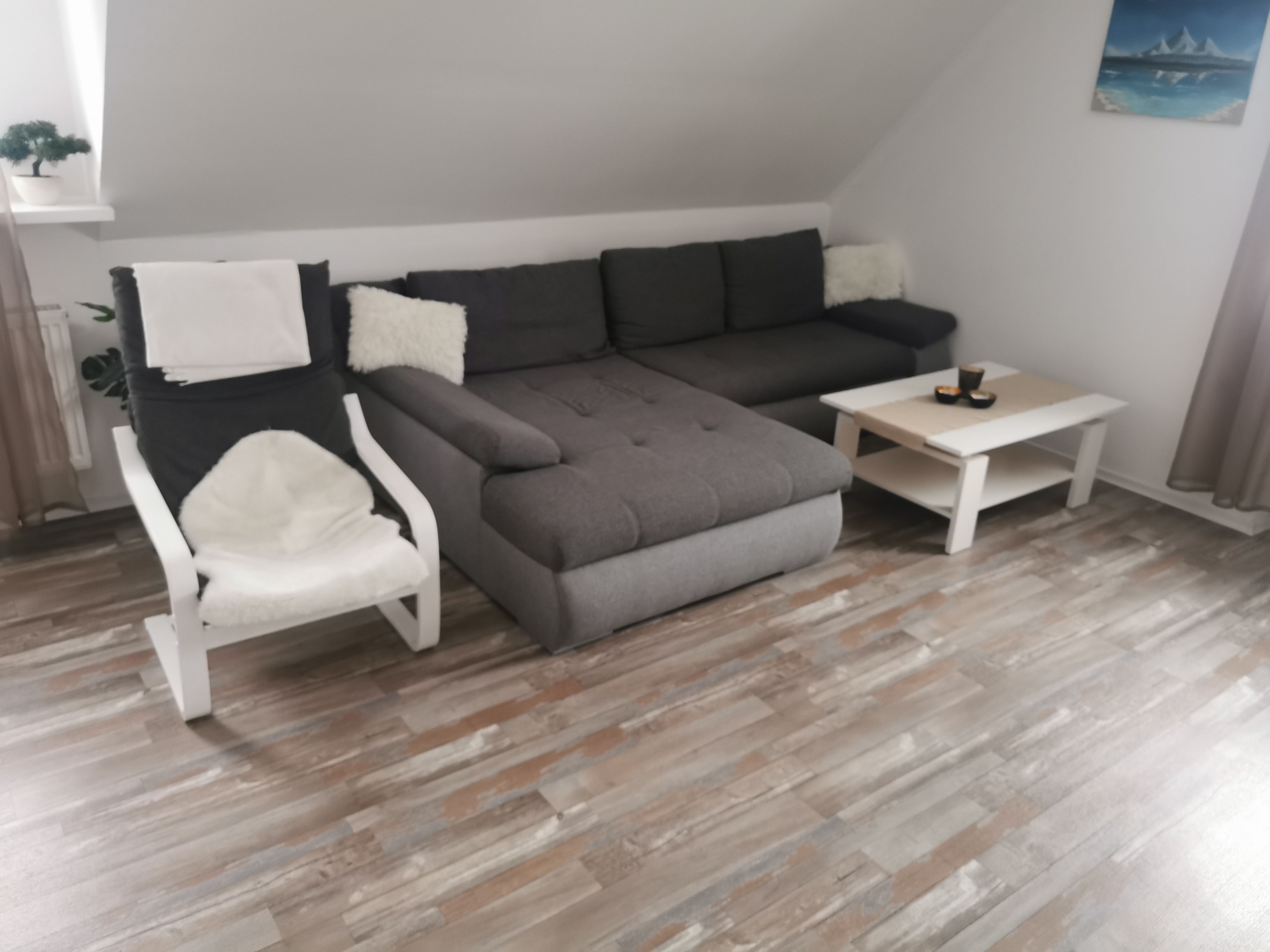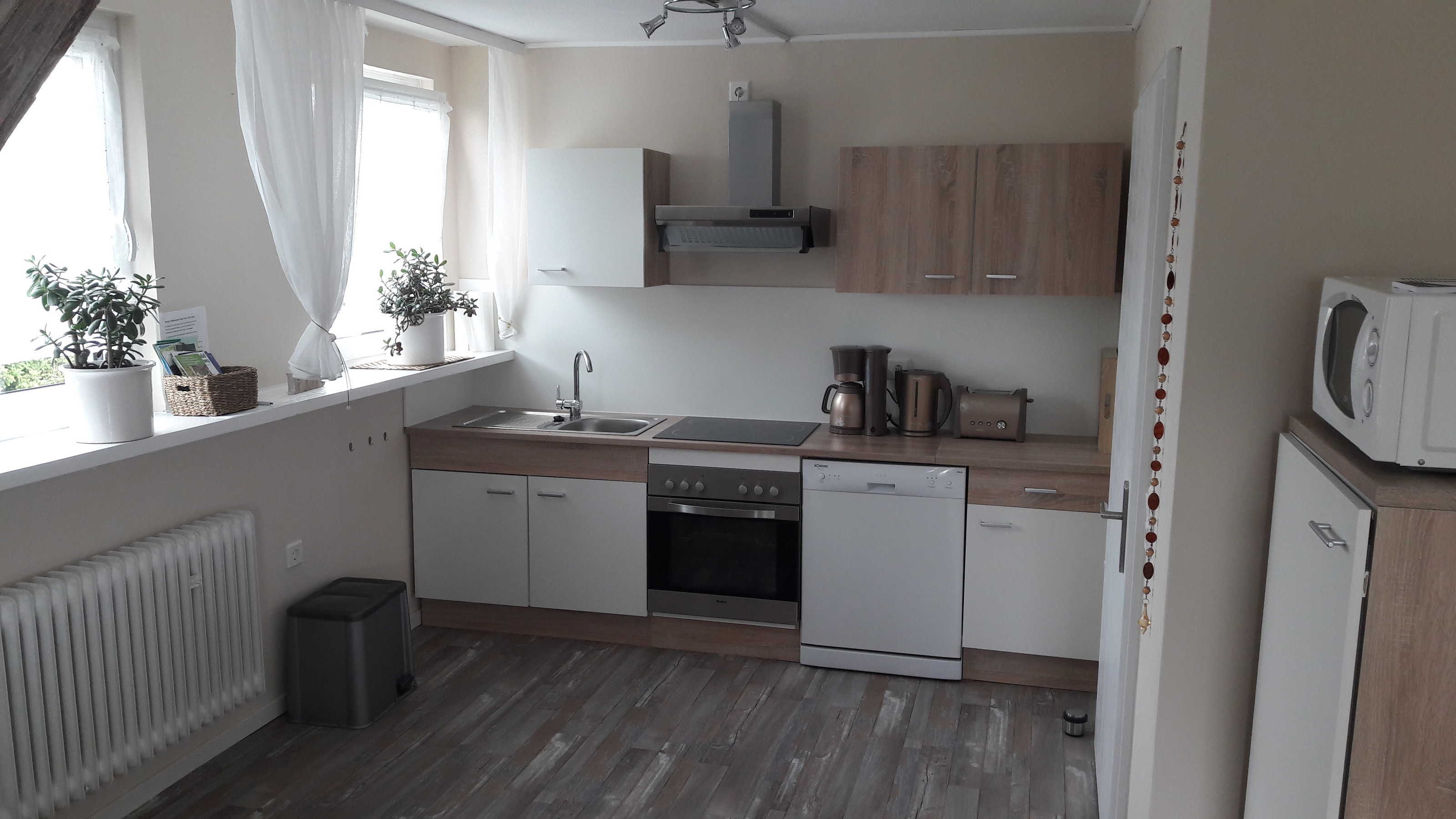 modern und komfortabel eingerichtet, ca. 80qm groß, max. bis 5 Personen, in ruhiger Ortsrandlage, Wohnzimmer, 1 Schlafzimmer mit Doppelbett (2,00x2,00m), 1 Kinderzimmer mit zwei Einzelbetten (0,90x2m), Küche mit Spülmaschine, Cerankochfeld, Wasserkocher, Mikrowelle, Toaster und Kaffeemaschine, Bad mit Dusche, Fön, separatem WC, Garderobe, Bettwäsche und Handtücher inklusive,