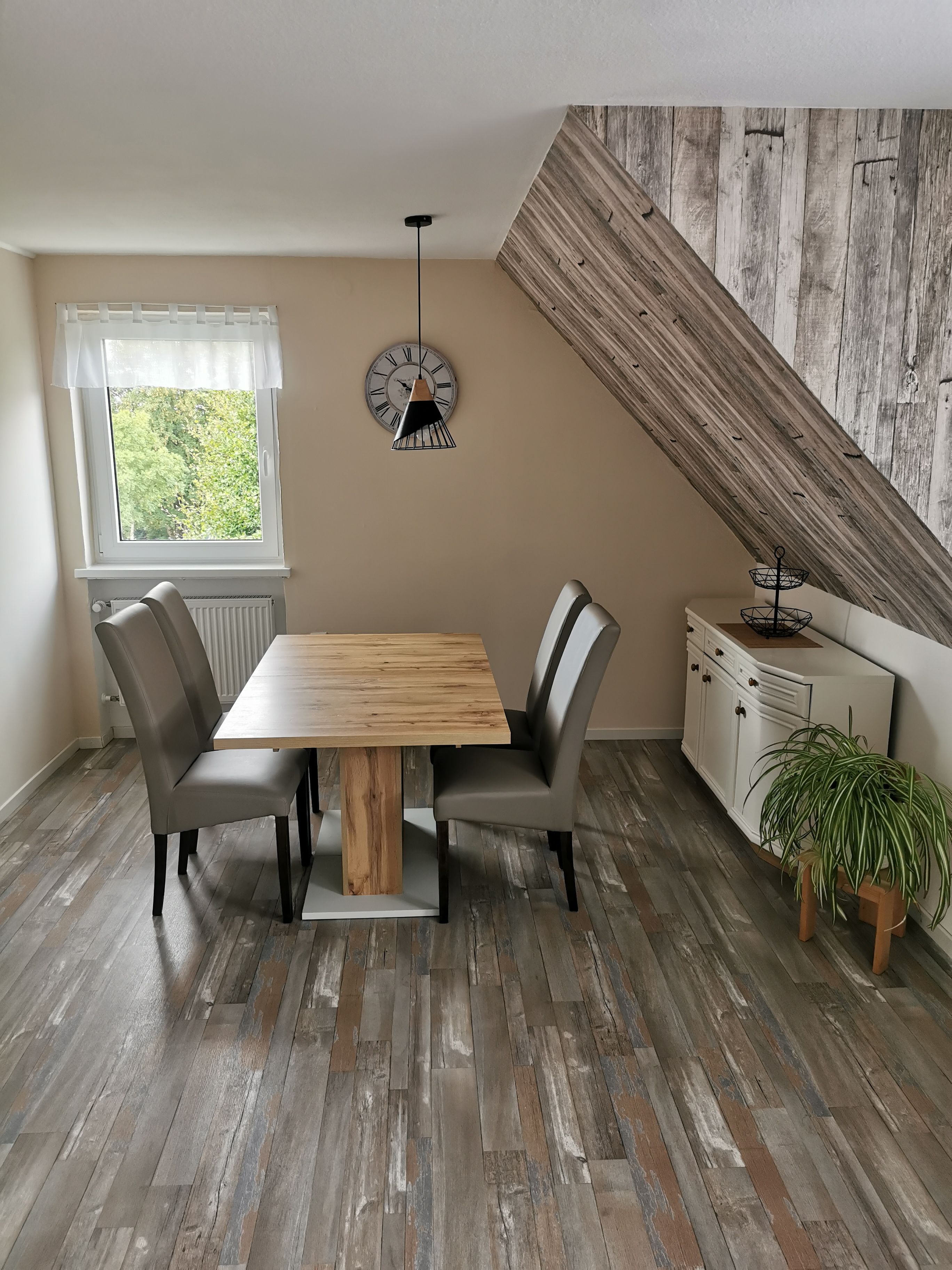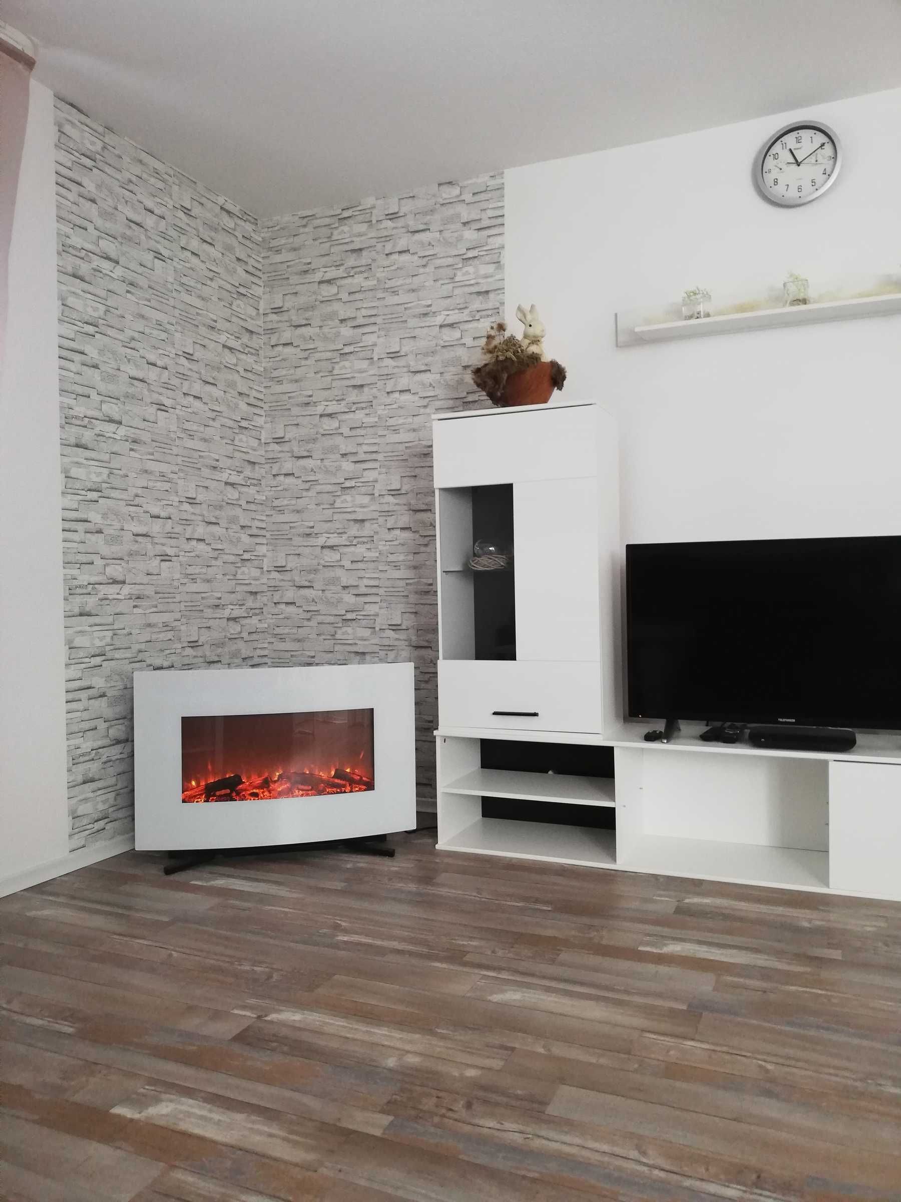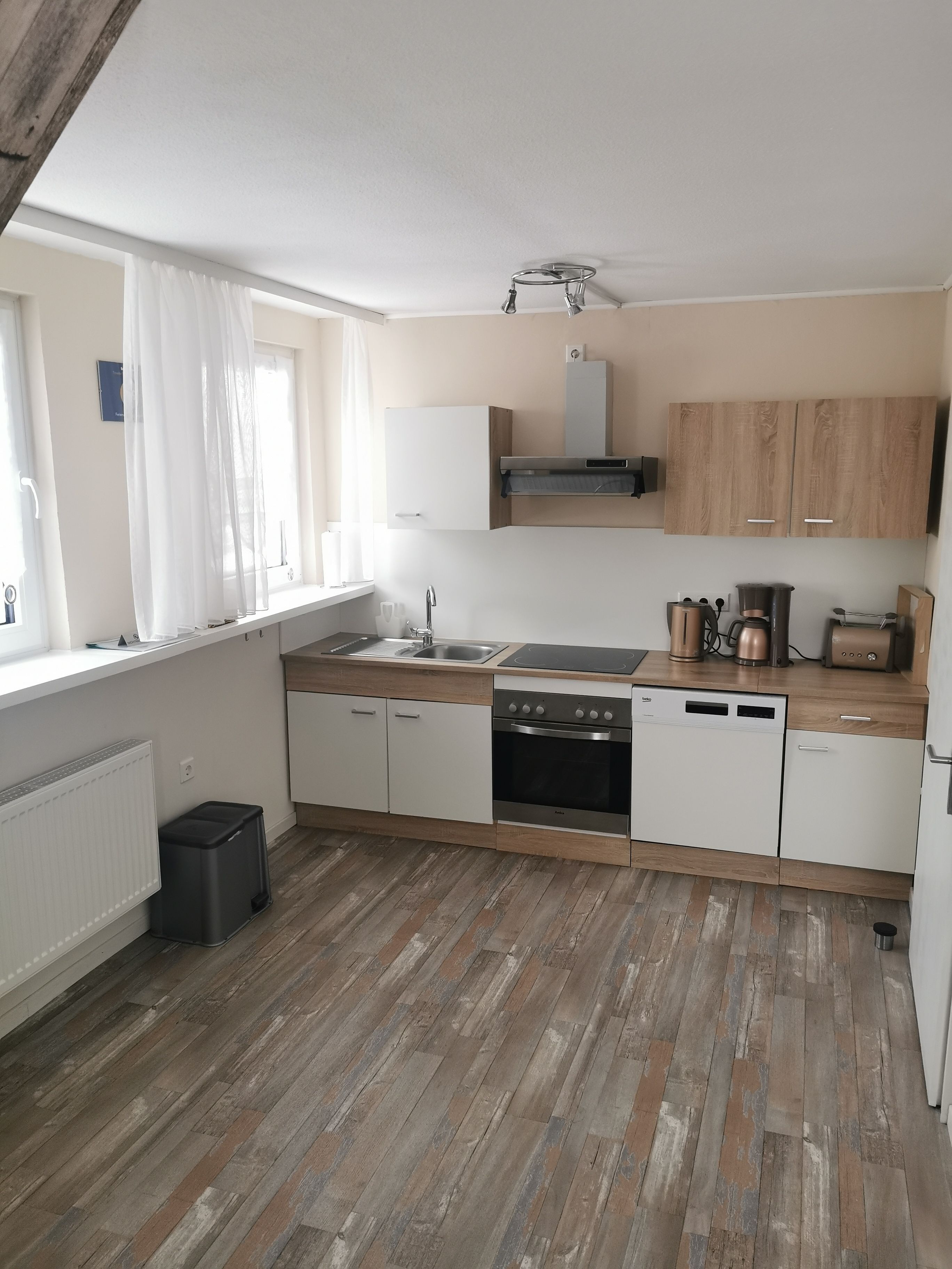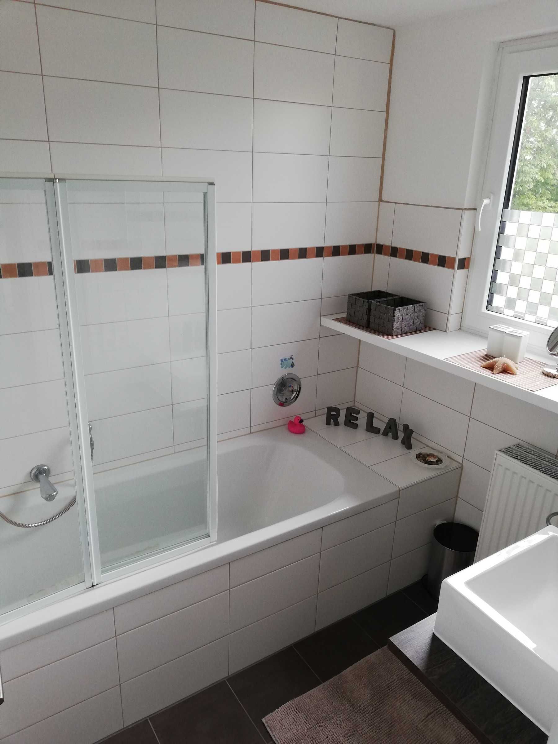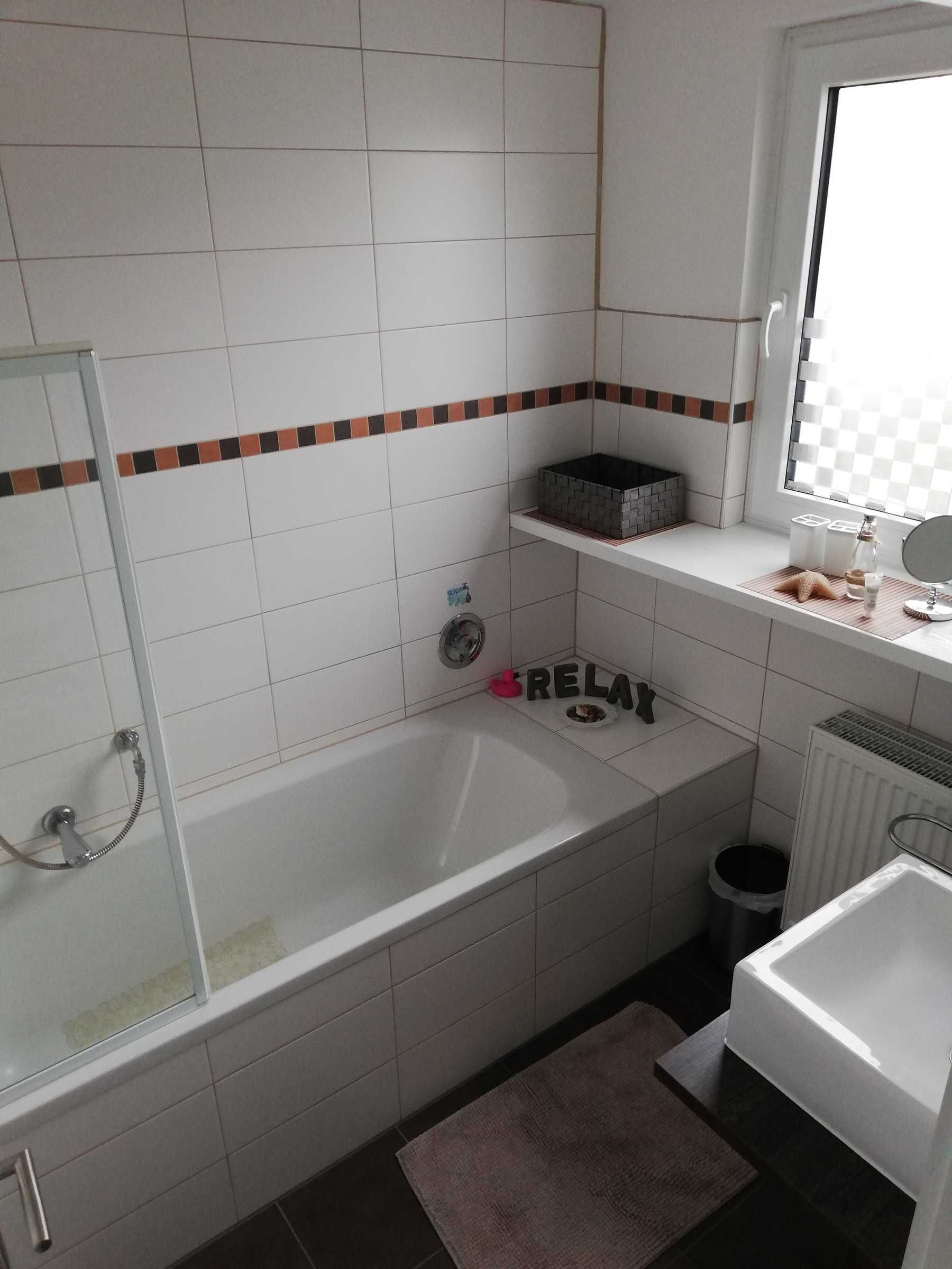 modern und komfortabel eingerichtet, ca. 80qm groß, max. bis 5 Personen, in ruhiger Ortsrandlage, Wohnzimmer, 1 Schlafzimmer mit Doppelbett (2,00x2,00m), 1 Kinderzimmer mit zwei Einzelbetten (0,90x2m), Küche mit Spülmaschine, Cerankochfeld, Wasserkocher, Mikrowelle, Toaster und Kaffeemaschine, Bad mit Dusche, Fön, separatem WC, Garderobe, Bettwäsche und Handtücher inklusive,