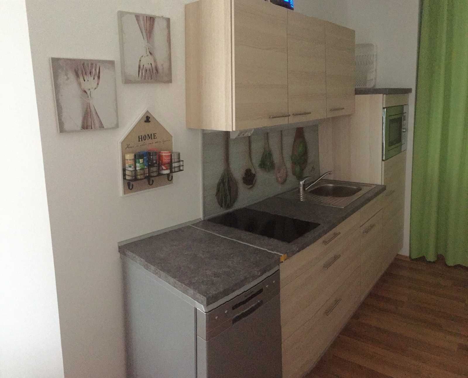 Küche mit Geschirrspüler,Mikrowelle,Wasserkocher,Toaster,Eierkocher,Kaffeemaschine ,Wasserkocher, kleiner Backofen und genügend Geschirr.
