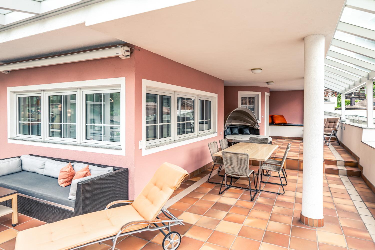 175m² (8-11 Pers) 2 Etagen, 1 DZ mit Bad (Whirlwanne!) und begehbarem Kleiderschrank, 1 Dreibettzimmer, 1 DZ im Turm mit Boxspringbett und elektrischem Ofen, 1 Etagenbettzimmer, 2 weitere Badezimmer mit Badewanne u./oder Dusche, Tages-WC, Luxusküche mit Miele-Geräten, Essbereich im Wintergarten, Wohnbereich m. Ausziehcouch, offener Kamin,4 Flat-TVs, WLan, 70m² überdachte Terrasse, Balkon,...