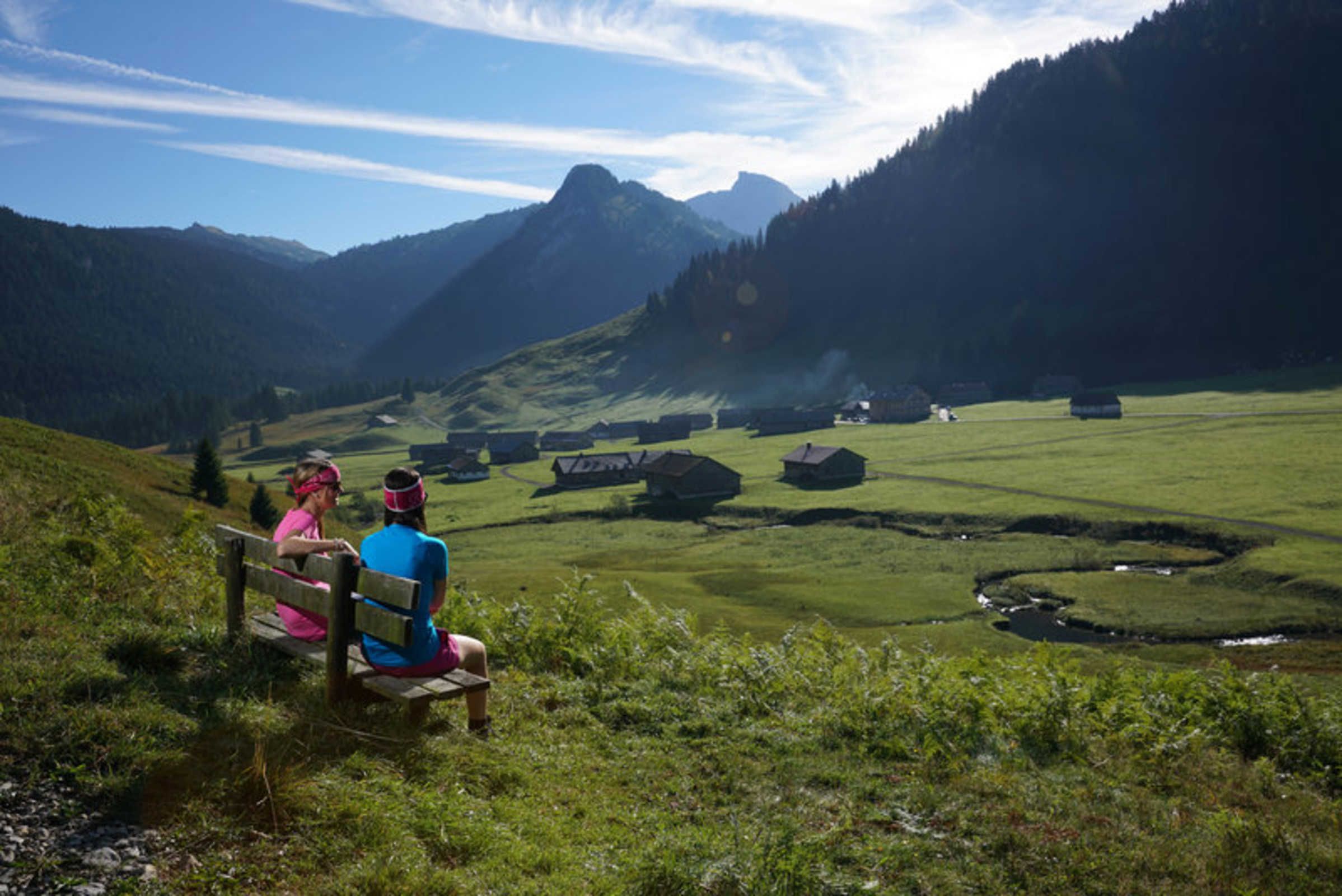 Die ruhige Lage unseres Hauses - mit Blick zum Hirschberg und zur Kanisfluh - ist in Zentrumsnähe und ohne Durchzugsverkehr. Für Ihr Auto steht ein Carport zur Verfügung. In unserem Garten mit sommerlichem Flair steht eine Sitzecke für Sie bereit.