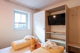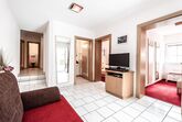 Ihr Wintergarten Apart Vanessa (ca. 80 m²) besteht aus: 1 Doppelzimmer mit Zusatzcouch (1 Person), 1 Badezimmer mit seperatem WC, 1 extra Doppelzimmer, 1 Einzelzimmer, 1 Bad mit DU/WC und 1 Schlafsofa (1 Person) in der Diele. Die Wohnküche mit Sat-TV, Telefon, ihr persönliches I-Pad und großzügigem Esstisch verfügt über eine komfortable Kochnische mit Geschirrspüler, Mikrowelle, Kühlschrank mit Gefrierfach, Wasserkocher, Toaster, Kapselkaffeemaschine, Sodastream und direktem Zugang zum Garten und der Terrasse mit Gartenmöbeln. Kombi-Appartement: Möglichkeit zum Kombinieren von mehreren Appartements nebeneinander für Groß-Familien oder Gruppen.