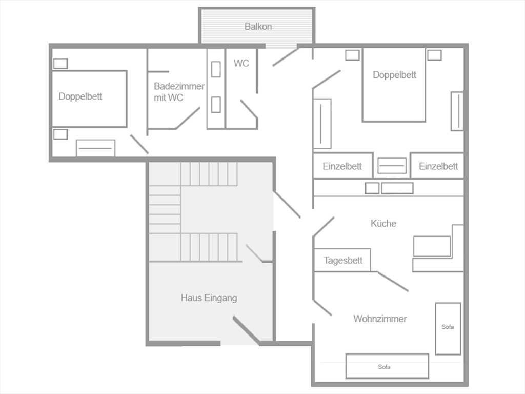 Wohnung im 2. Stock (ca.100m2) mit Platz für bis zu 5 Personen