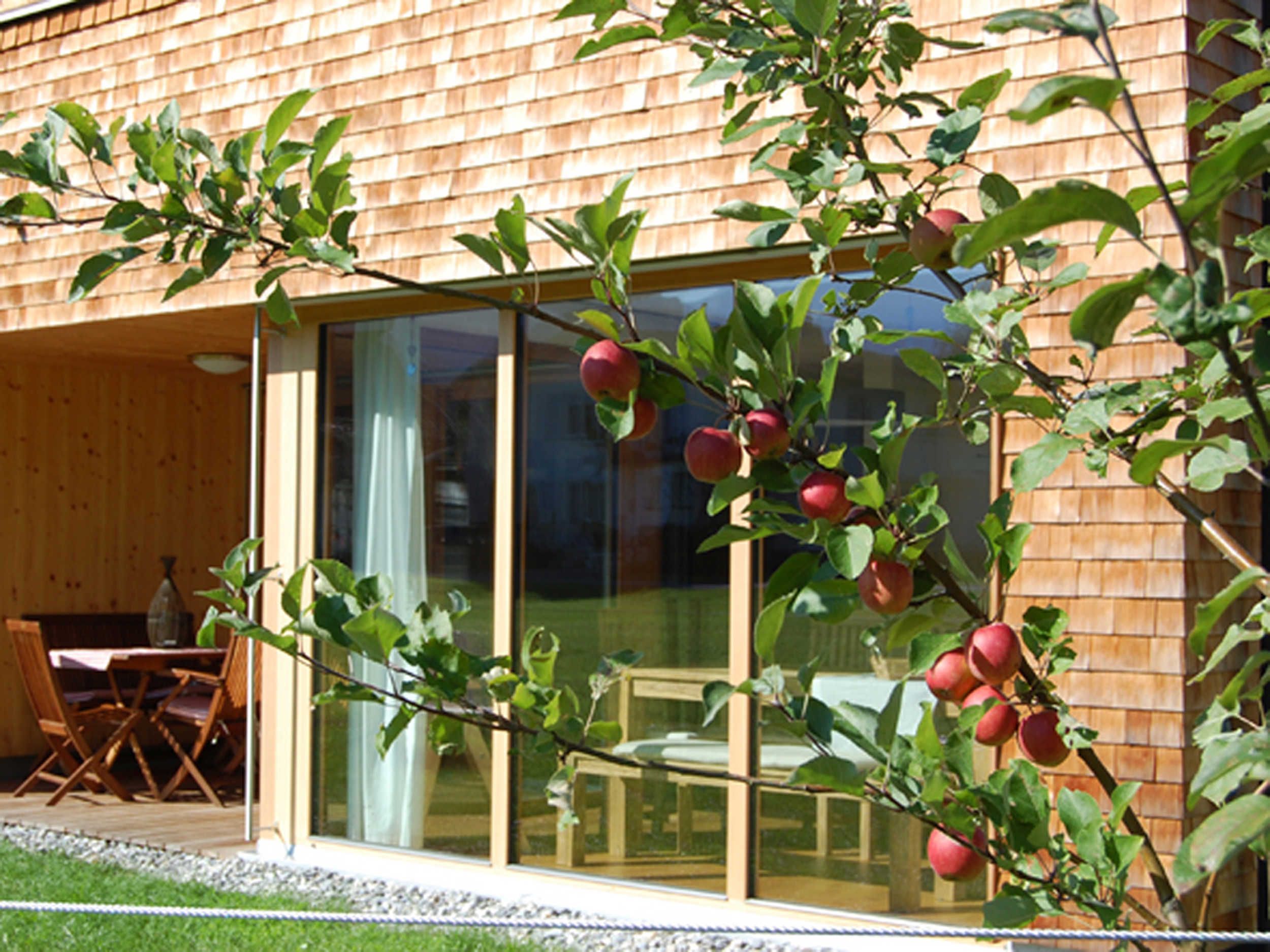 Sie ist ebenerdig und besteht aus einer tollen Wohnküche mit großem Esstisch, 2 Schlafzimmer, einem Wohnbereich mit super Ausziehcouch für 2 Personen, TV sowie einer tollen überdachten Terrasse und einem kleinen eigenen Garten.