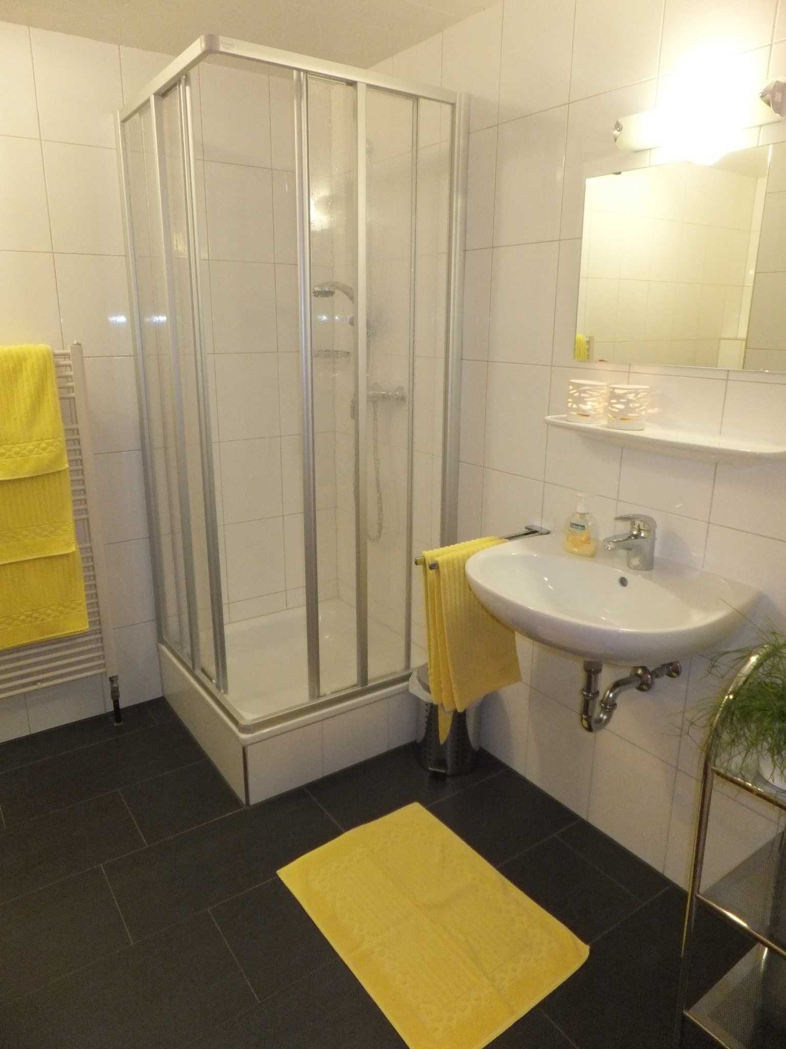 und ein separates WC, große Wohnküche mit Couchecke, Spülmaschine und Mikrowelle, Cafemaschine und Wasserkocher, Zimmersafe, Radio mit CD und Sat-TV mit DVD Player.