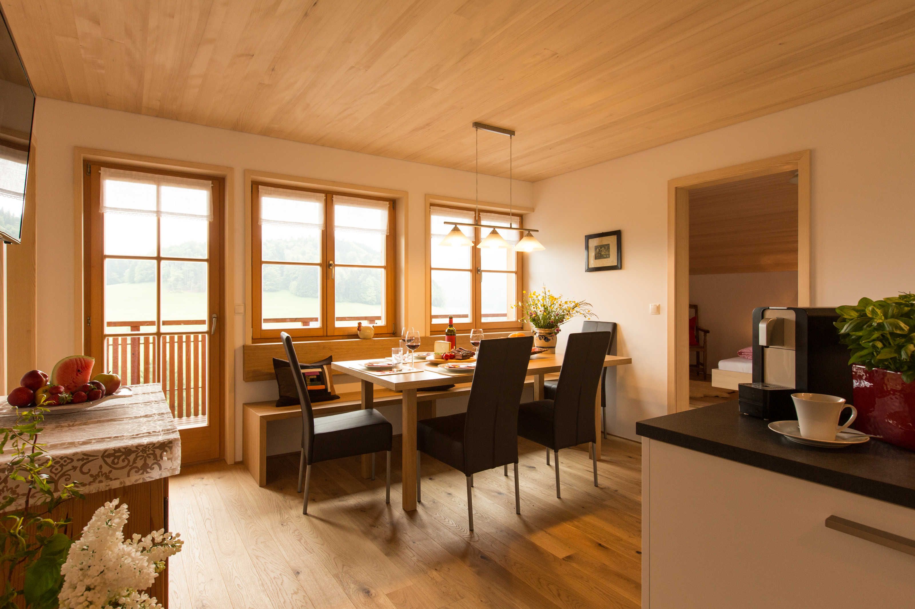 Unsere Ferienwohnung wurde aus heimischem Holz errichtet und bietet Platz für 5 Personen.
