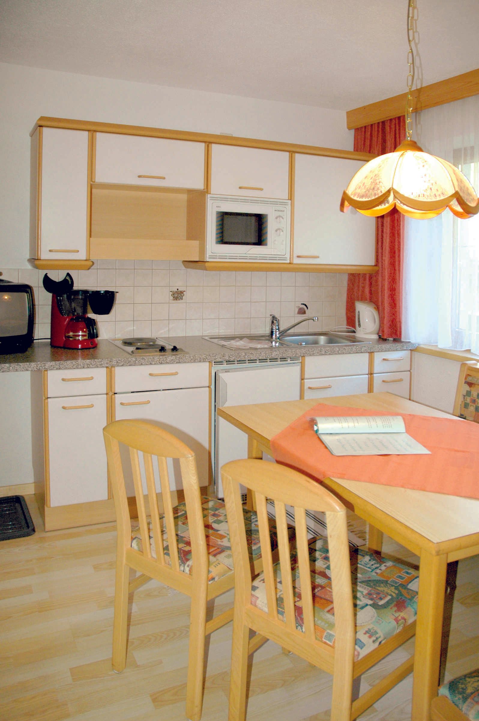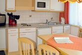 Unsere Wohnküche ist mit Herd (2 Platten), Geschirrspülmaschine, Kühlschrank, Mikrowelle,Wasserkocher,Töpfen, Besteck, Schüsseln, etc. ausgestattet. Auf Anfrage bekommen Sie auch einen Toaster bzw. Eierkocher geliehen.