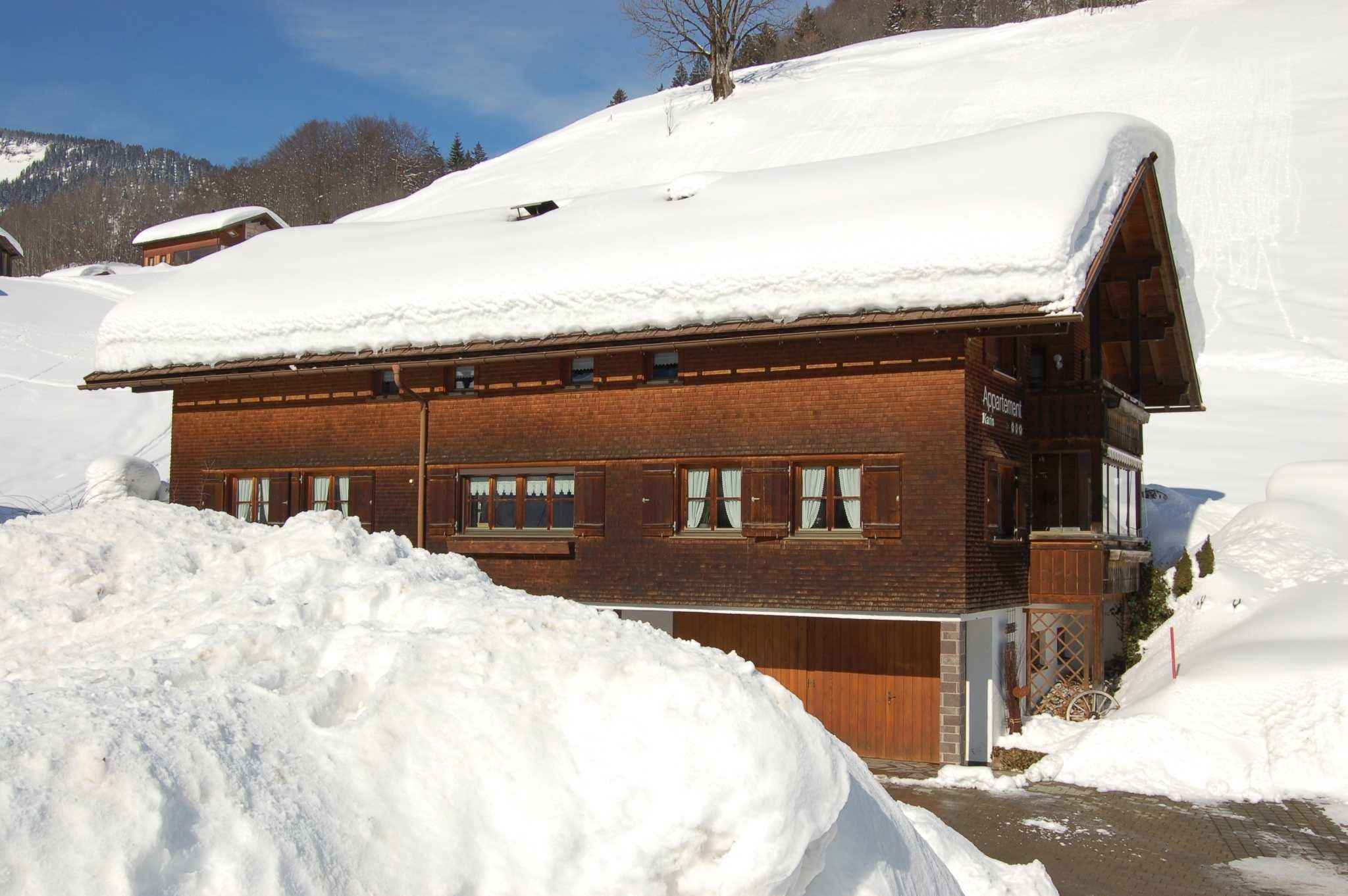 Sie wohnen auf 850m Seehöhe, in ruhiger sonniger Lage, am Südhang von Schoppernau, nur wenige Minuten vom Zentrum entfernt.