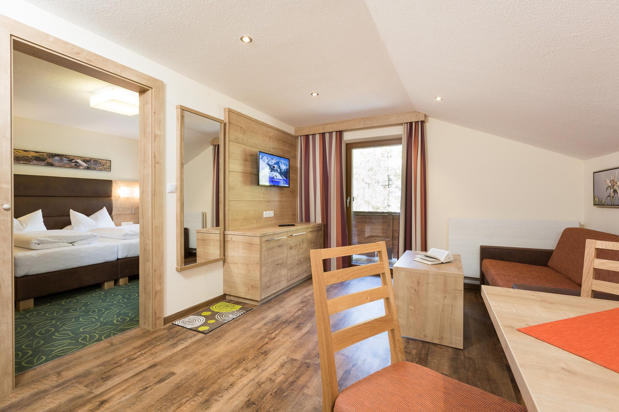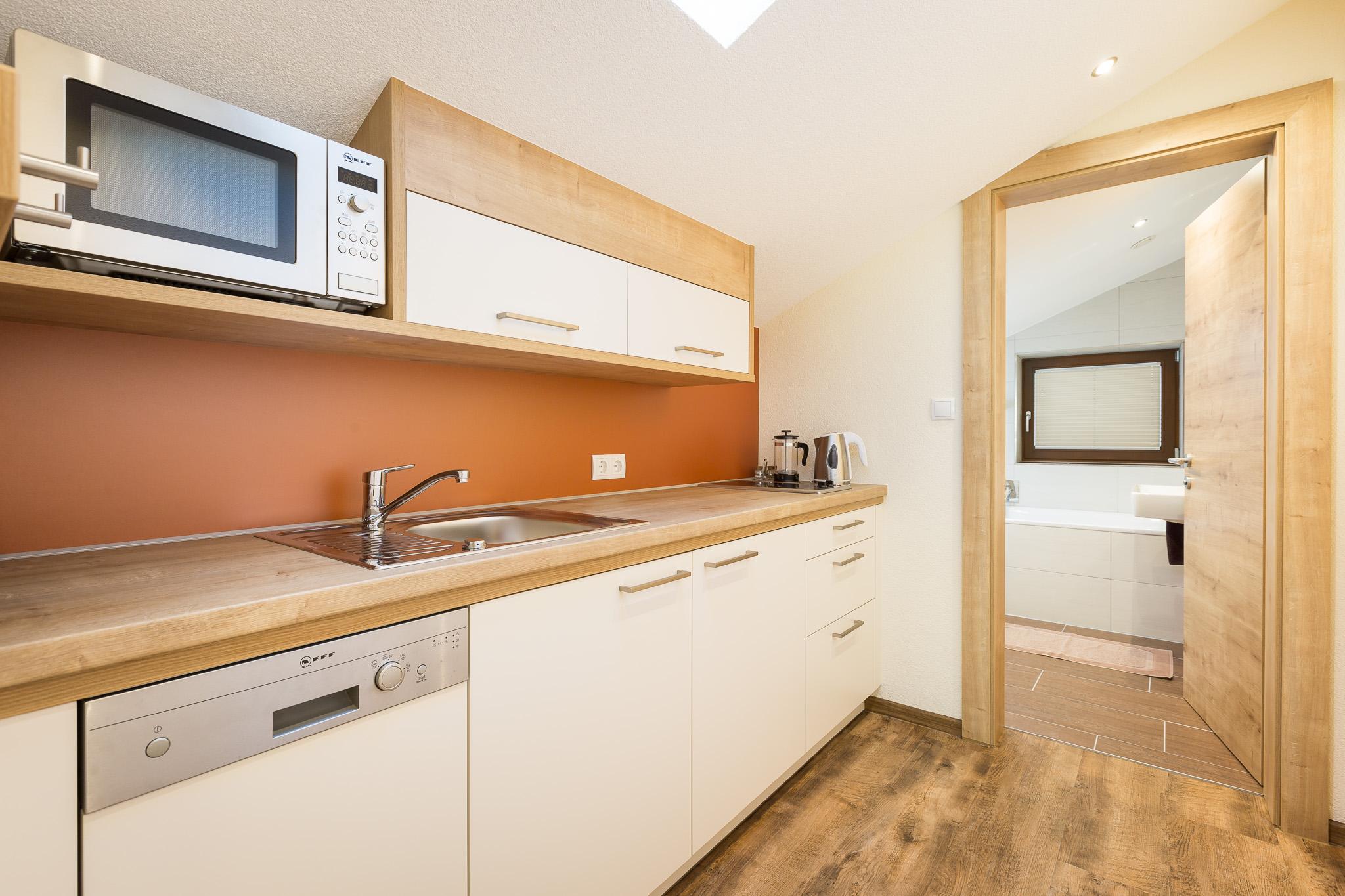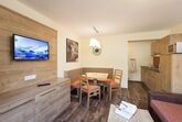 Gemütlich ausgestattetes Appartment für 2-4 Personen, ca. 40 m²; 1 Schlafzimmer, 1 Wohn-Schlafzimmer mit Doppelcouch, Bad/WC, Telefon und Kabel-TV, eigener Küche mit Plattenherd, Kühlschrank, Kaffeemaschine, Mikrowelle, ... Größe: ca 40 qm