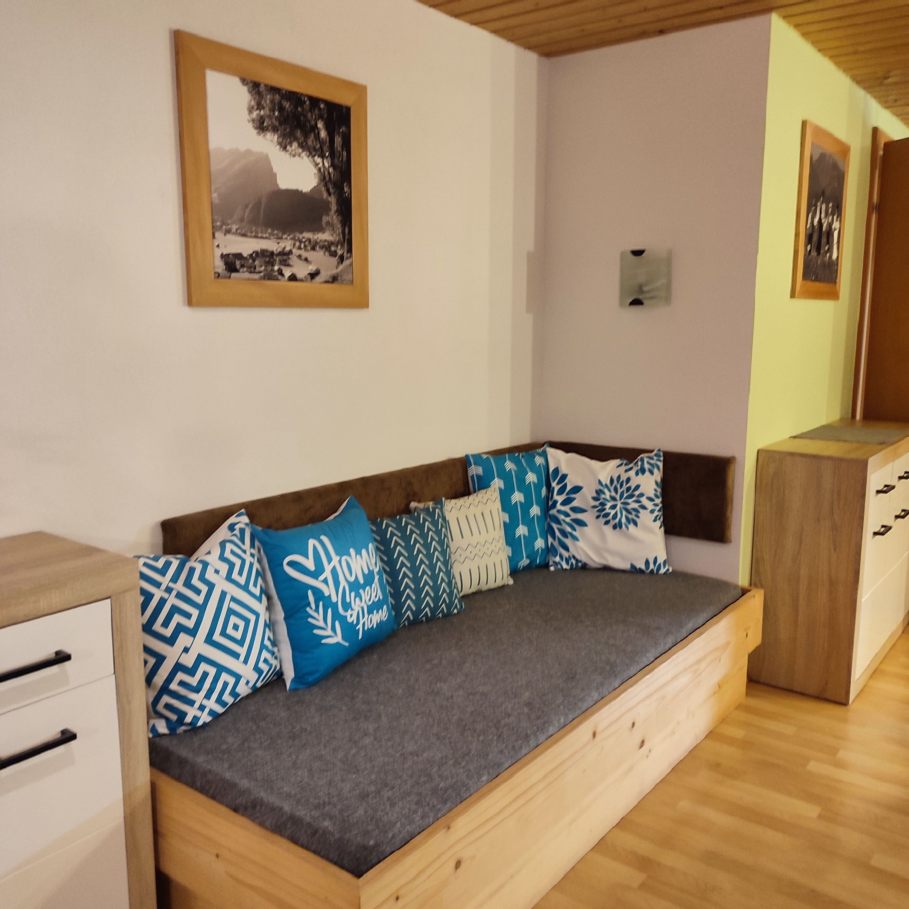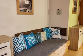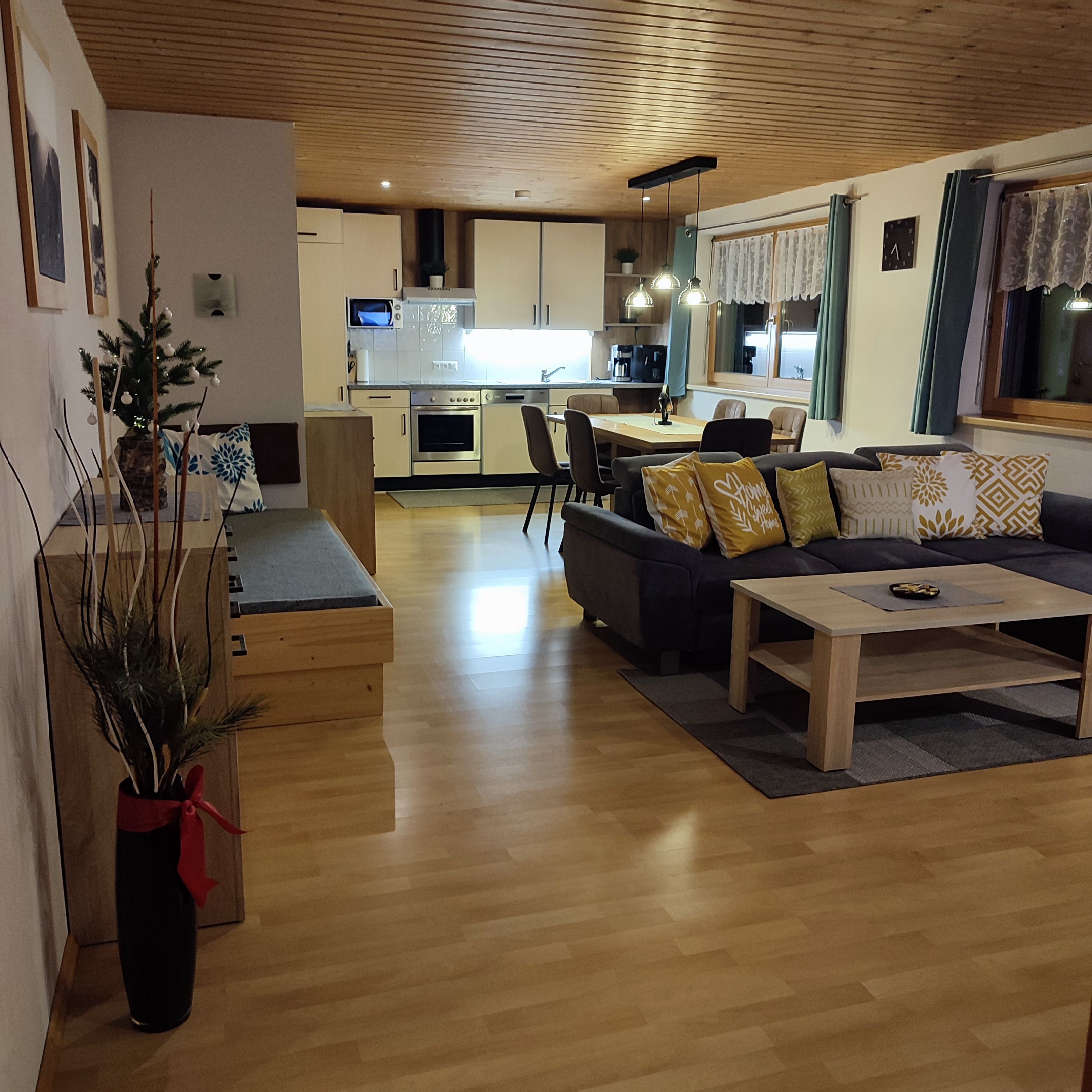 Unsere komfortable und gemütliche Ferienwohnung ist für 2-5 Personen und liegt im Erdgeschoss. Die Wohnung verfügt über 2 separate Doppelzimmer, 1 Wohnschlafzimmer, Dusche, WC, Terrasse. Die Wohnküche ist mit einer schönen Sitzecke, Geschirrspülmaschine, Micro, E-Herd mit Backrohr, Kaffeemaschine und TV ausgestattet. Handtücher und Bettwäsche sind im Preis inkludiert.