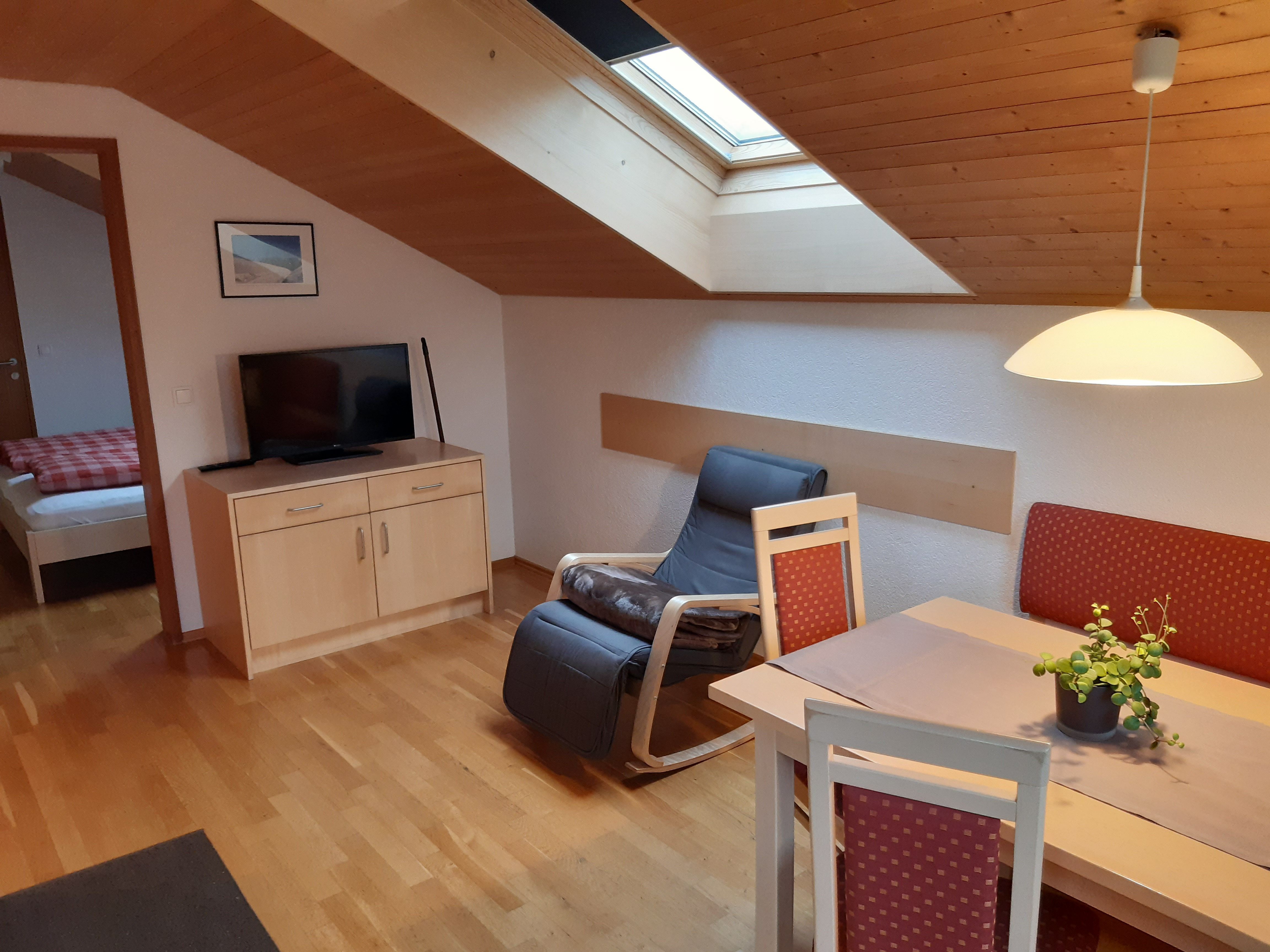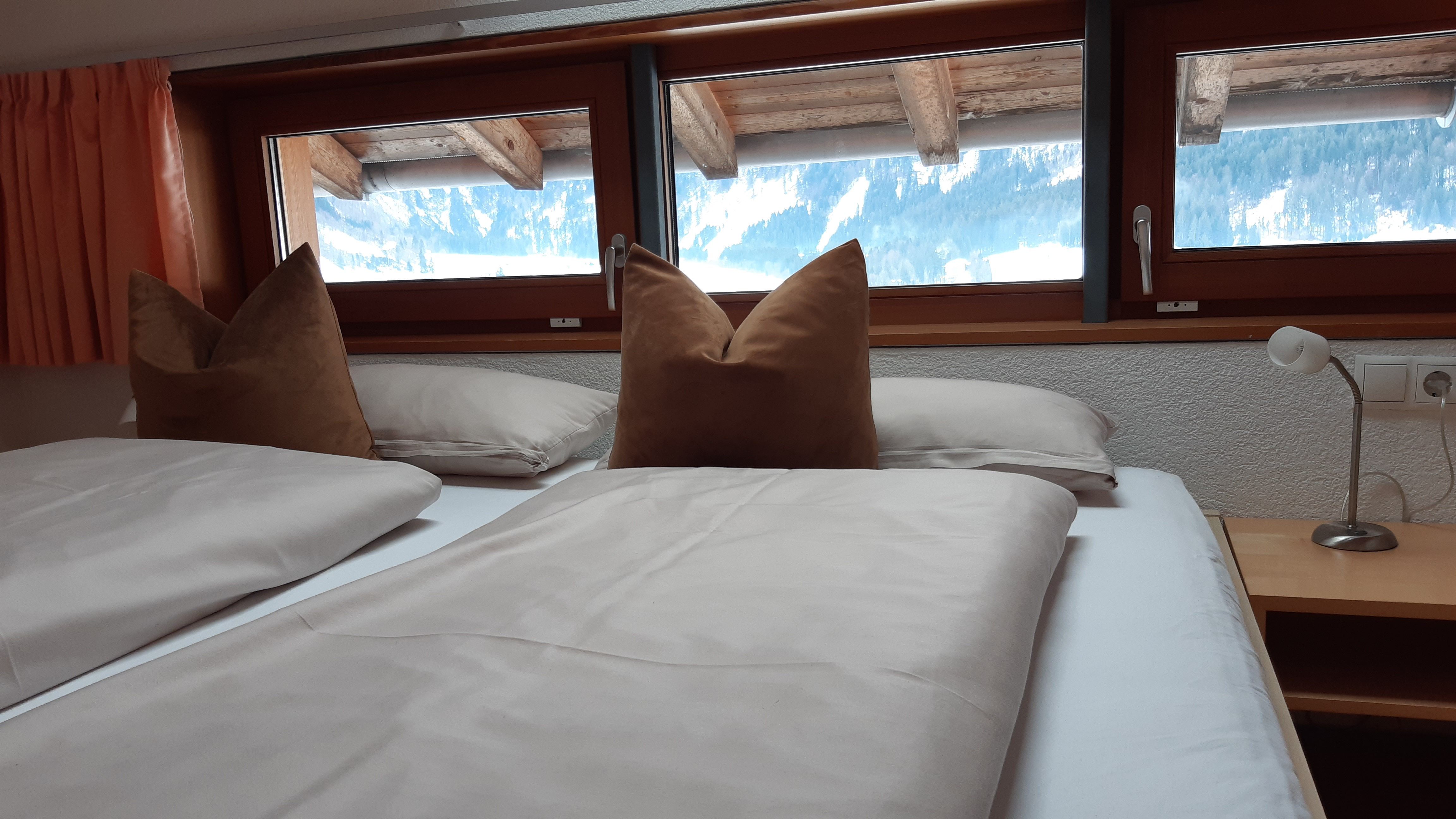 Unsere Wohnung Berg-Panorama verfügt über eine helle Wohnküche mit Fernsehsessel, 2 separate Doppelzimmer,Balkon mit herrlichem Ausblick, Dusche/WC, SAT-TV mit Flachbildschirm, kostenloses WLAN.