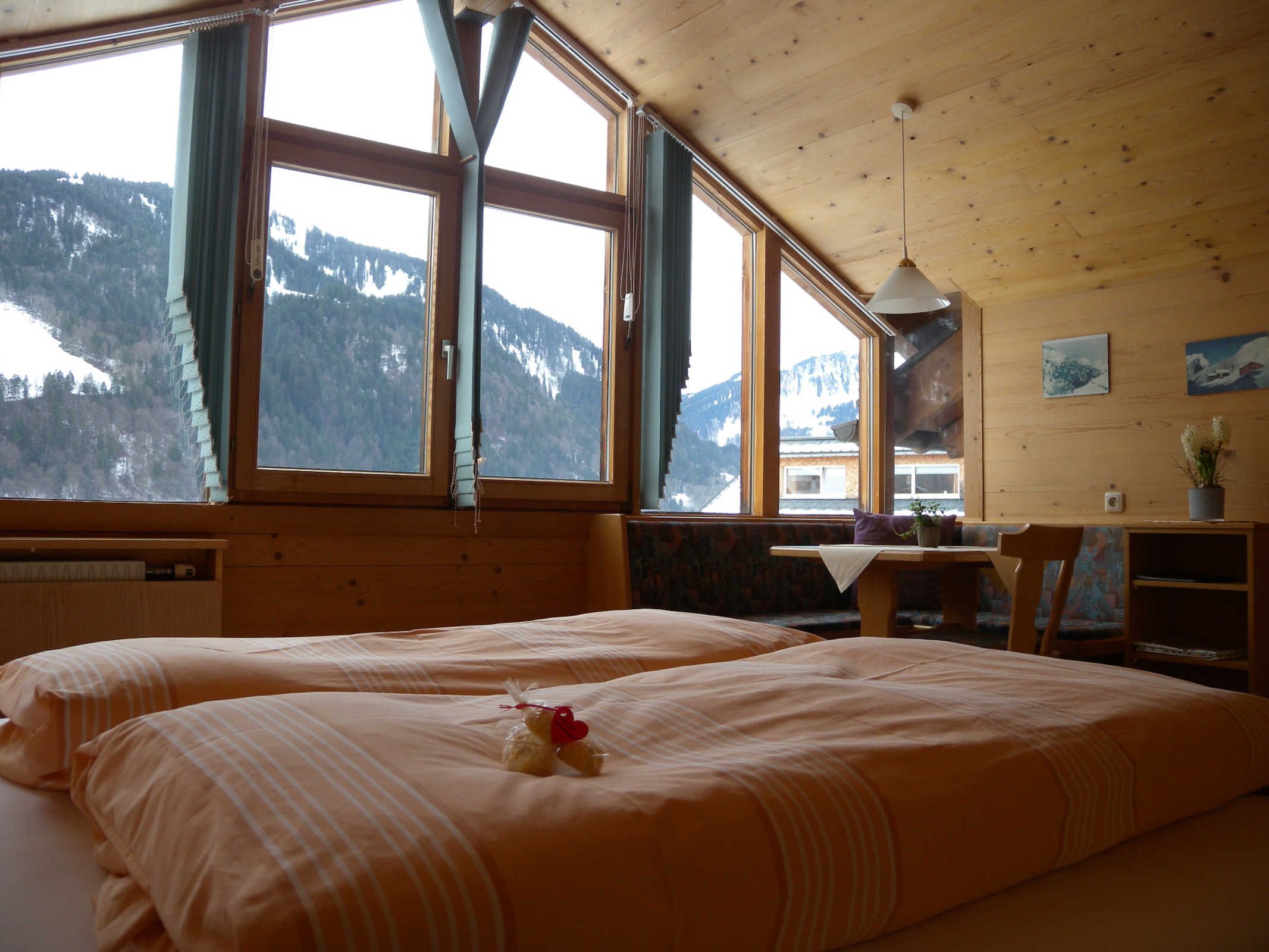 Ab drei Nächtigungen erhalten Sie von uns gratis die Inclusiv-Card-Bregenzerwald, mit der können Sie sämtliche öffentlichen Verkehrsmittel im Bregenzerwald kostenlos benützen. Besuchen Sie kostenlos Schwimmbäder, Seilbahnen, Museen usw. So wie der Bregenzerwald als eine der schönsten Wanderregionen Europas bekannt ist, so viel bietet er auch den Wintersportlern. Langlaufen, Rodeln, Schifahren, Touren gehen oder Snowboarden - für jeden hat der Bregenzerwald sein Angebot, das keinen Vergleich zu scheuen braucht. Am besten Sie rufen uns heute noch an, oder sie mailen uns Ihren speziellen Wunsch.