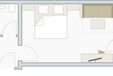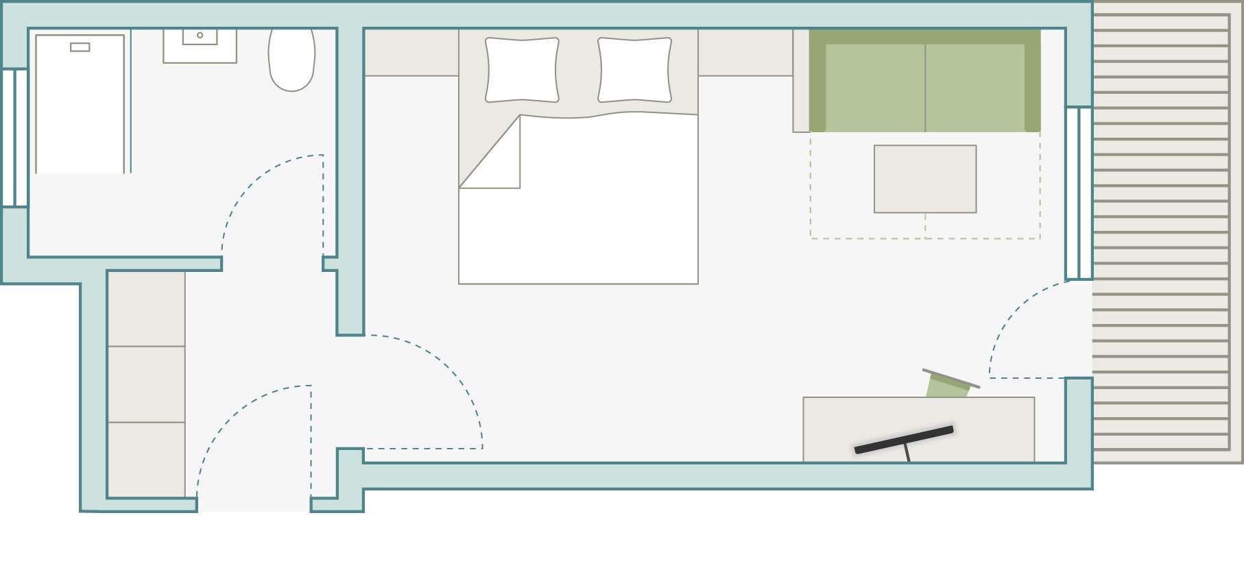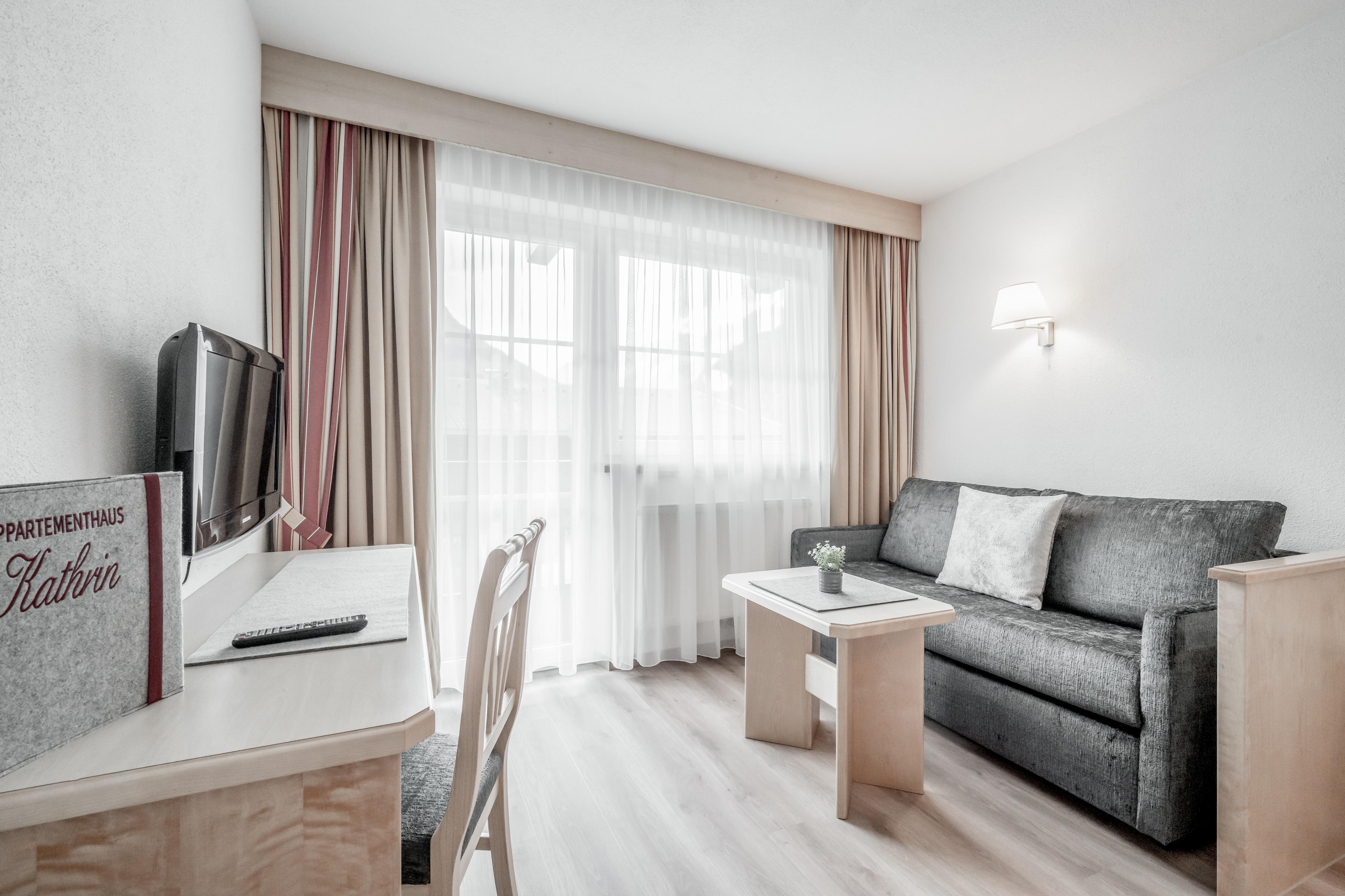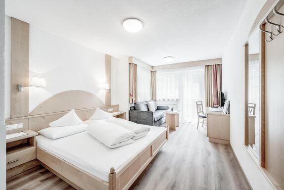 Doppelbett mit zusätzlichem Sofa (neu mit komfortabler Matratze - Schlafgelegenheit), Couchtisch und Flat TV + Mini Safe. Badezimmer/WC, Föhn, Bademäntel und Hygieneartikel (Erstausstattung).Balkon oder Terrasse.Tägliche Zimmerreinigung.