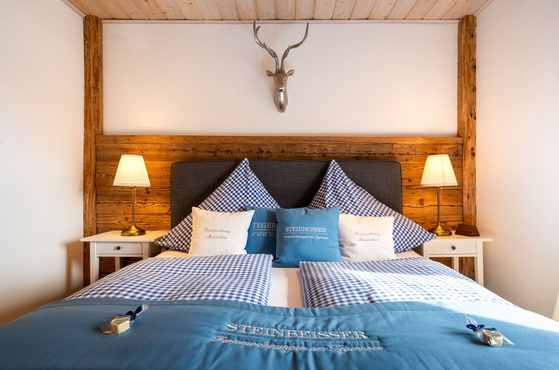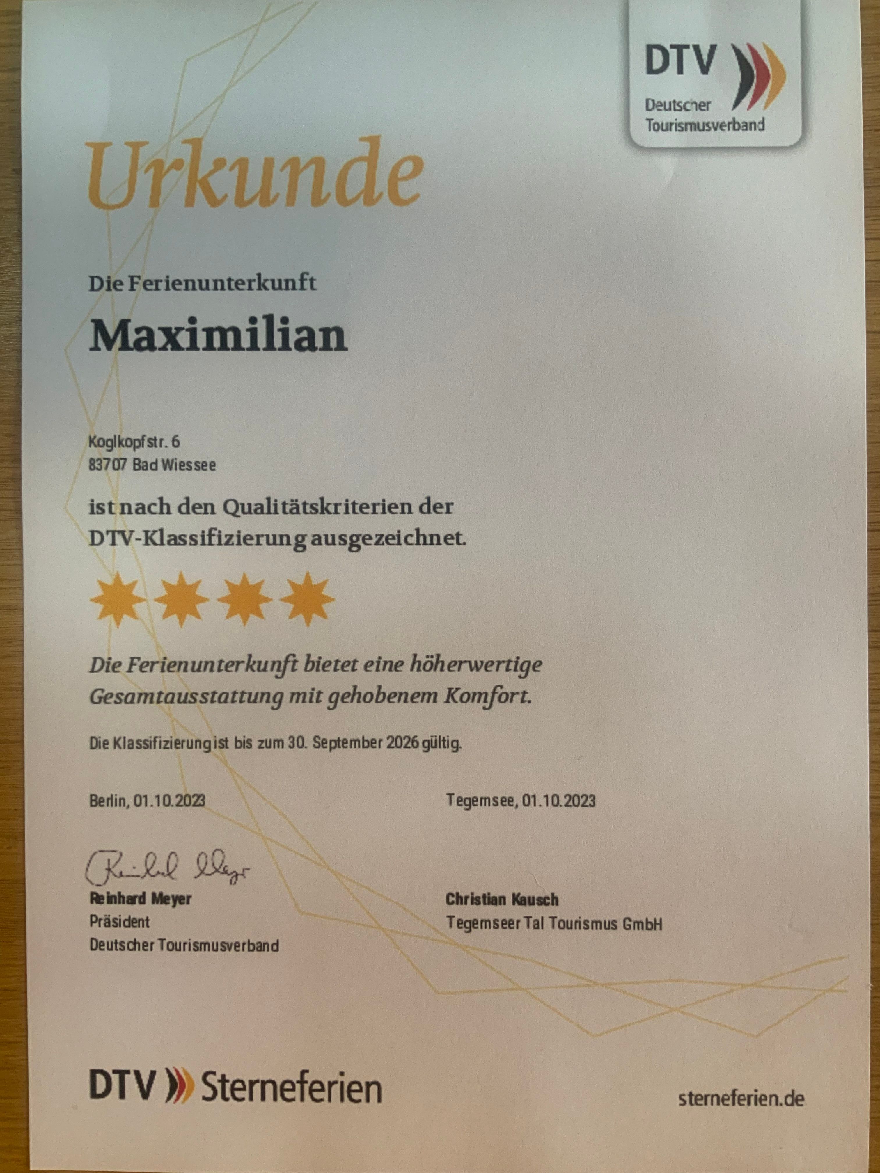 Herzlich Willkommen in Bad Wiessee am wunderschönen Tegernsee in unserer im oberbayerischen Stil laufend renovierten und gemütlichen Ferienwohnung Maximilian. Ihr Urlaubsdomizil ist hochwertig ausgestattet und bietet Ihnen jeglichen Komfort. Die ansprechend mit echtem Altholz ausgebaute Wohnung verfügt über einen großzügigen Wohn- und Essbereich mit holzbefeuertem Kamin, zwei getrennte Schlafzimmer mit bequemen Boxspringbetten, eine separate und voll ausgestattete Küche, zwei Bäder mit Regenduschen, ein extra Gäste-WC, einen umlaufenden Balkon mit Sitzmöglichkeiten, Flachbild-TV mit Vodafone GIGA-TV, Stereoradio mit CD-Player (MP3/USB/Bluetooth-fähig), privaten WLAN-Zugang und Safe. Waschmaschine und Trockner sind in der Wohnung vorhanden. (gegen Gebühr) Ein privater, kostenloser und videoüberwachter Parkplatz für Ihr Fahrzeug, eine KFZ E-Ladestation und eine Liegewiese mit Außengrill inkl. Sitzgarnitur befindet sich direkt am Haus. Auf Wunsch Brötchen-, Zeitungs- sowie Transferservice zum Bahnhof. (gegen Gebühr) Die Tegernsee-Card mit vielen Vergünstigungen (z.B. kostenlose Nutzung des Bus- und Schifffahrtsnetzes am See) ist für jeden Gast im Preis inbegriffen.