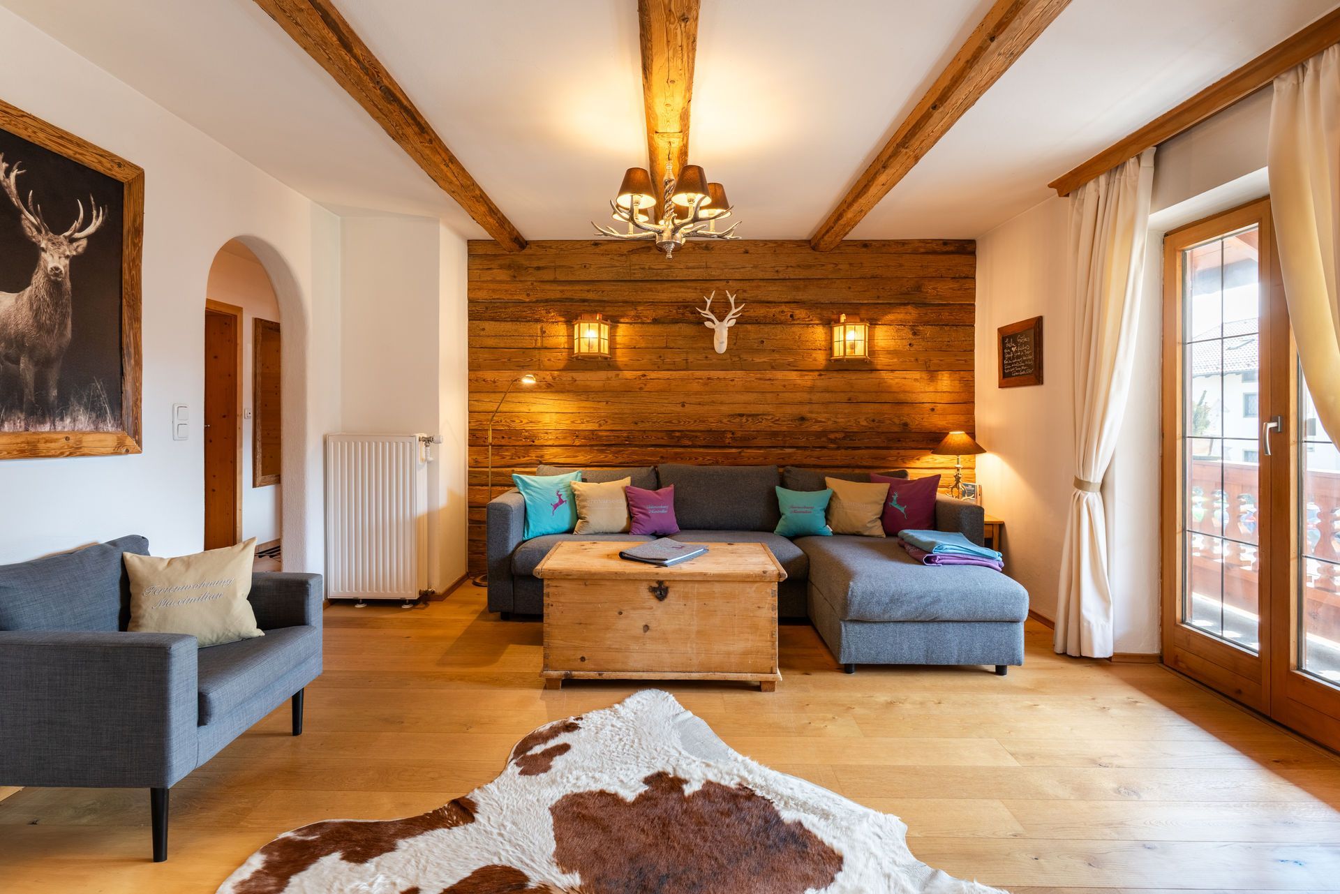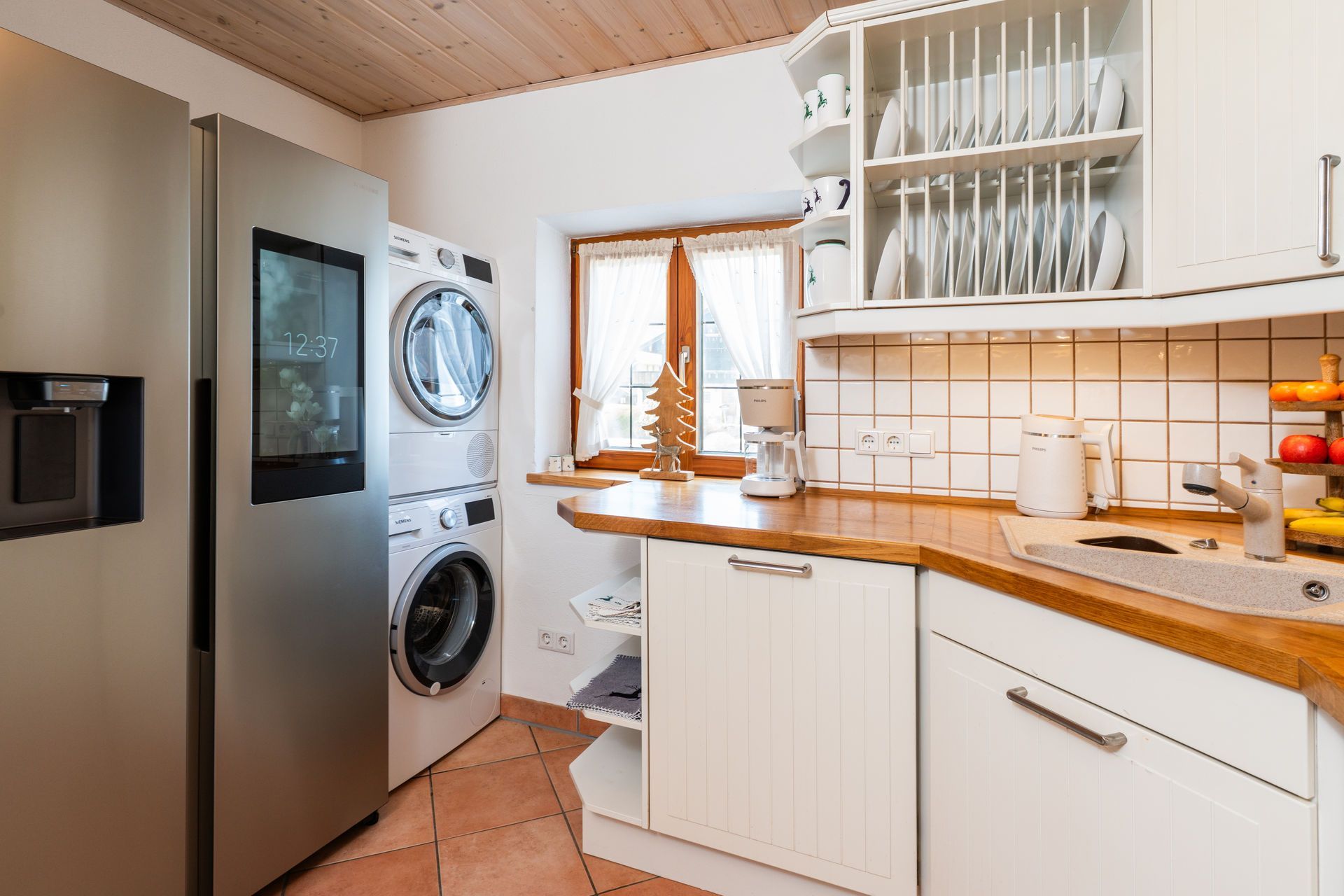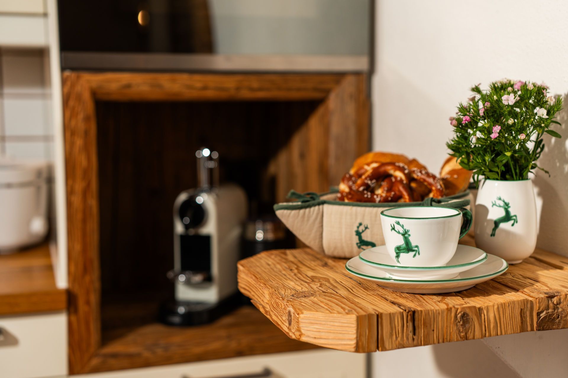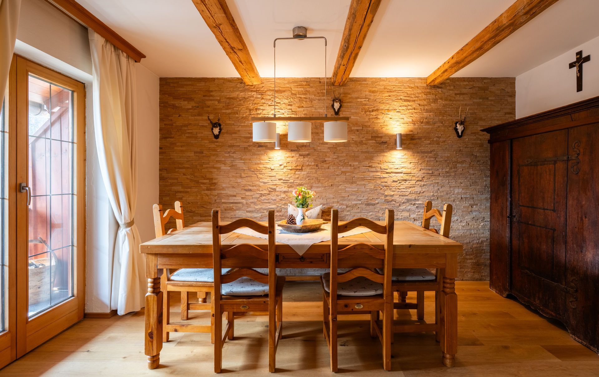 Die gemütliche und laufend renovierte ****Nichtraucherwohnung mit 4 Zimmern, separater Küche, zwei Bädern, extra Gäste-WC und Diele, erstreckt sich über das komplette 1. Obergeschoss des Hauses. Dadurch haben Sie in Ihrer Ferien-Unterkunft keine störenden Nachbarn neben sich. Hochwertig und rustikal aber modern im oberbayerischen Stil ausgebaut, werden Sie sich von Anfang an wie zu Hause fühlen. Hier treffen alte Materialien auf neue Technik. Verkleidungen und Einbauten wurden mit viel Liebe zum Detail aus echtem Altholz gefertigt, die Fußböden sind mit Landhausdielen ausgelegt. Hochwertige Stoffe schaffen eine gemütliche Atmosphäre. Im großzügigen Wohnbereich befindet sich ein holzbefeuerter Kaminofen für die kalten Tage, im daran anschließenden Esszimmer steht ein großer Holztisch für gesellige Stunden. Die voll ausgestattete Küche mit Induktionsherd, Backofen, smartem Side-by-Side Kühlschrank und Spülmaschine lässt keine Wünsche offen. Nespresso- sowie normale Kaffeemaschine, Wasserkocher und Toaster sind dort ebenso selbstverständlich wie ausreichend Geschirr und Besteck. Hier finden Sie auch eine Waschmaschine sowie einen Trockner vor (gegen Gebühr). Beide Badezimmer bieten Ihnen neben Waschtisch mit zusätzlichem Kosmetikspiegel und Haartrockner zeitgemäße Regenduschen. Auf dem überdachten und regengeschützten Balkon befinden sich ausreichend Sitzmöglichkeiten. Gerne können Sie sich aber auch auf der Liegewiese hinter dem Haus mit einem guten Buch entspannen. Liegestühle, Gartenmöbel und ein Außengrill stehen dort zu Ihrer freien Verfügung. Frische Bettwäsche, kuschelige Bademäntel und Handtücher sowie Endreinigung sind im Preis enthalten, ebenso wie die Tegernsee-Card für jeden Gast.