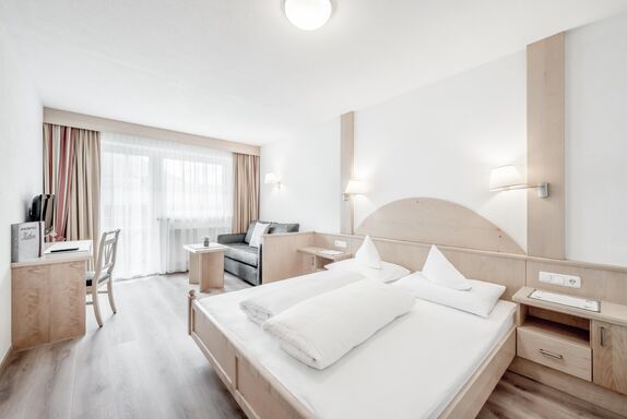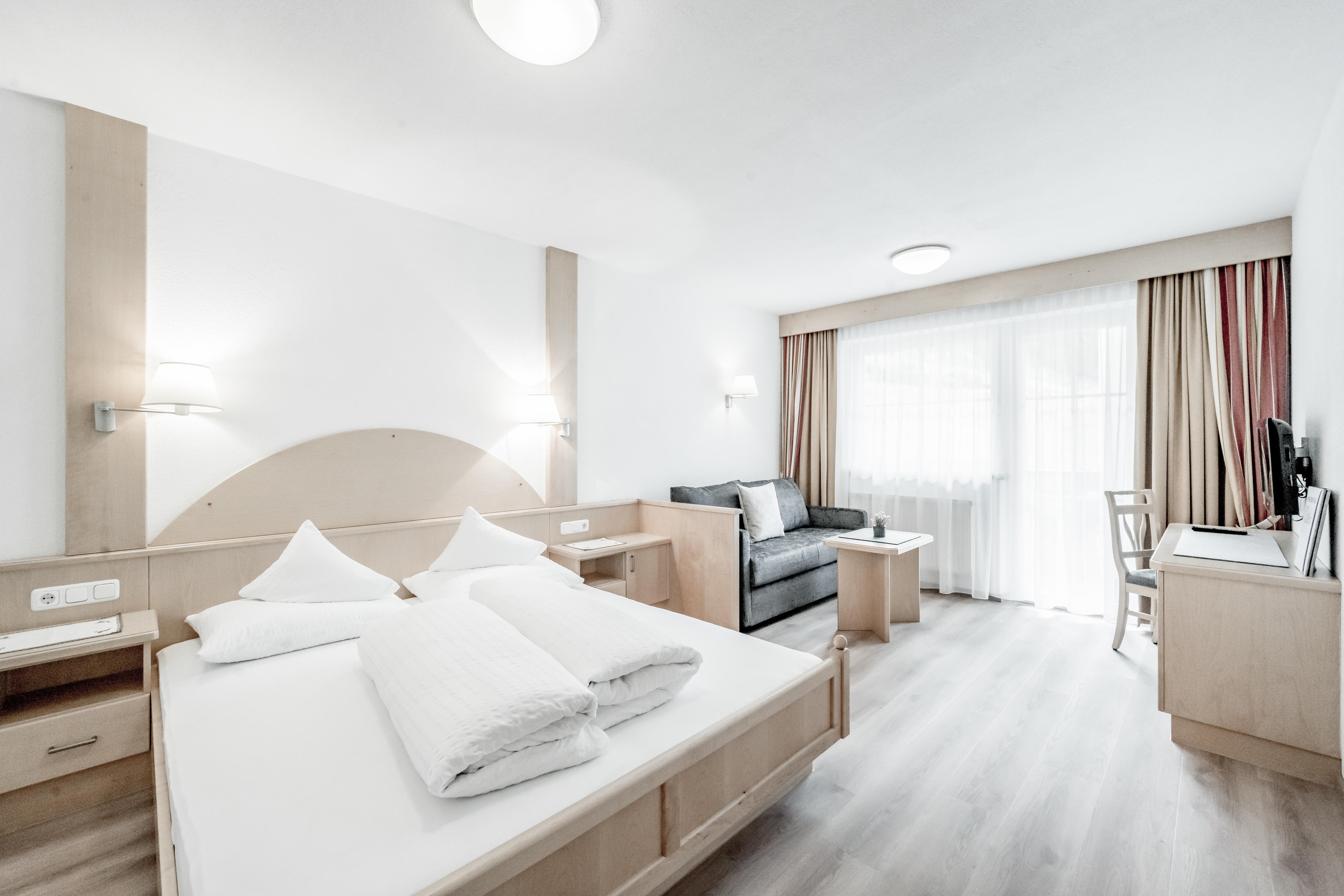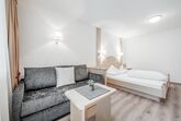 Schlafzimmer mit eingebautem Doppelbett (zusätzliche neue Couch - ausziehbar mit komfortabler Matratze), Couchtisch, Plasma TV und Safe. Badezimmer/WC mit Fön, Hygieneartikel (Erstausstattung) und Bademäntel.Voll ausgestattete Küche. Alle Appartements dieser Kategorie haben Balkon. Regelmäßige Reinigung und Handtuchwechsel inklusive.
