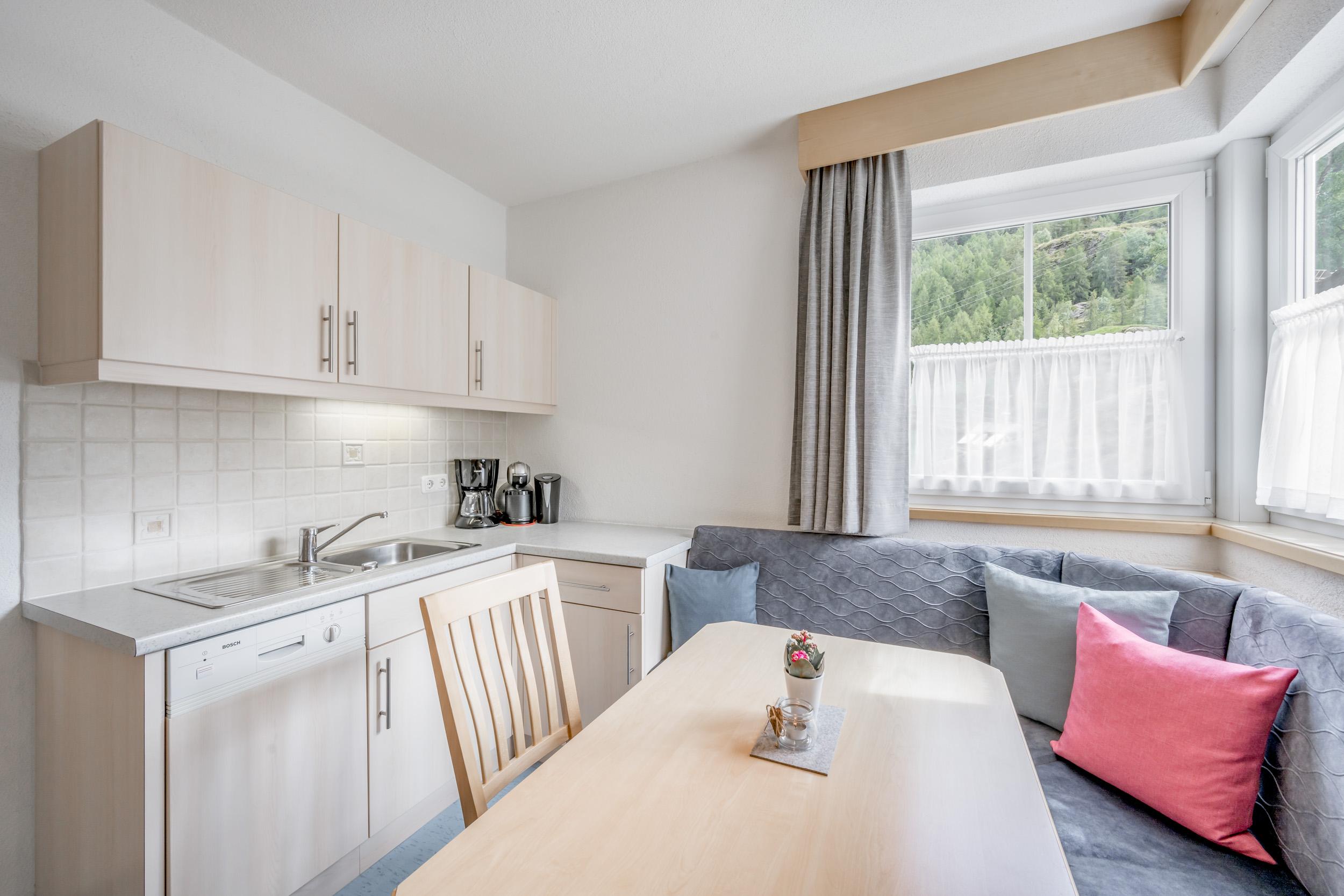 3 Doppelzimmer (eines davon größer mit Couch - ausziehbar/Matratze), Couchtisch,TV und Safe. 3 Badezimmer mit WC, Fön, Hygieneartikel (Erstausstattung) & Bademäntel. Voll ausgestattete Küche. Alle Appartements mit Balkon oder Terrasse. Regelmäßige Reinigung und Handtuchwechsel.