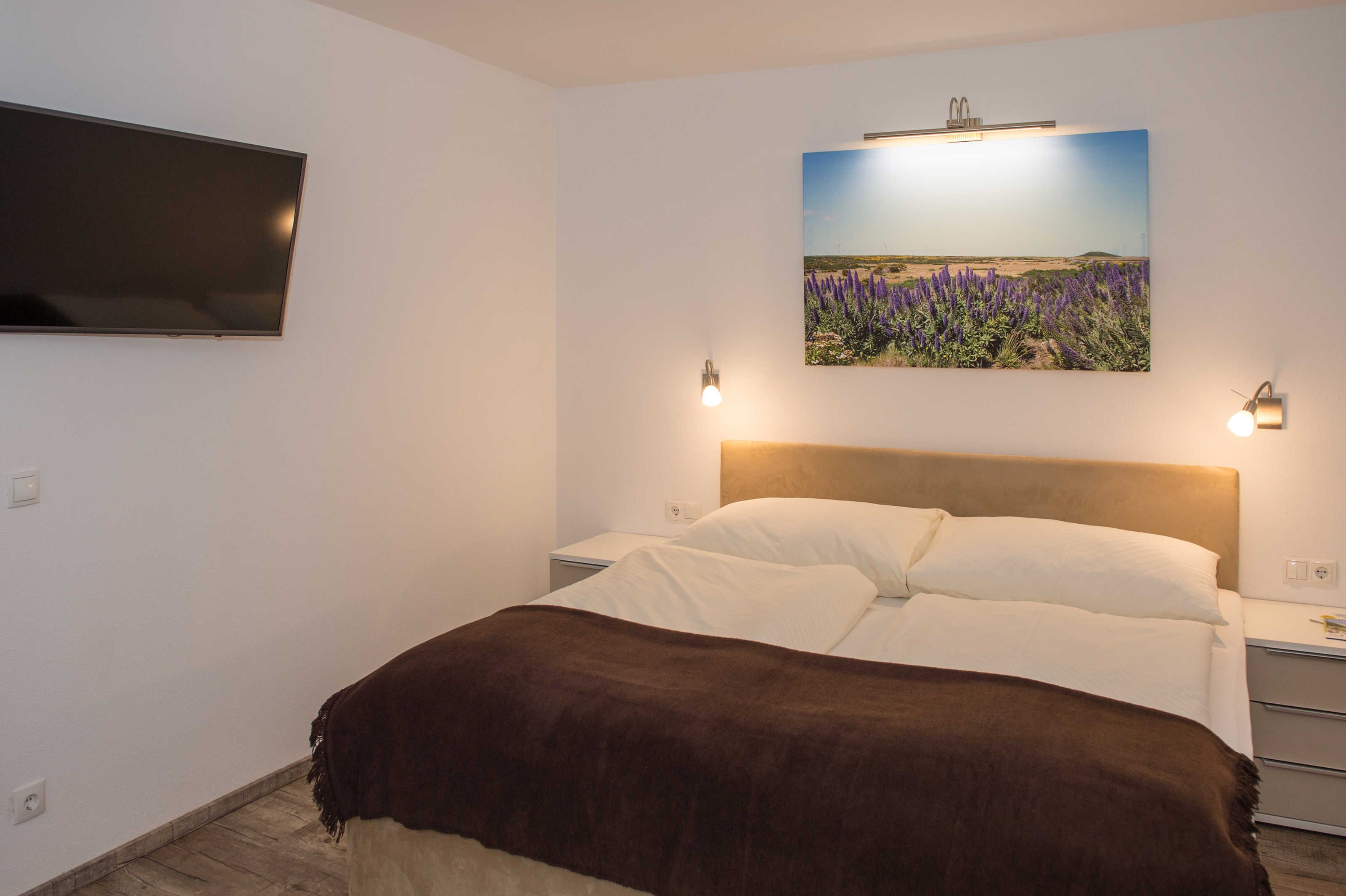 Das ist der Geheimtipp im Haus Renate. Die 38 m² große behindertengerechte Wohnung Nr. 10 im Erdgeschoss verleitet zur Urlaubsverlängerung! Mit einem großzügigen Bad mit Infrarot-Dusche und WC und einem Studio mit Küchenzeile und Essecke, einem Doppelbett und einer Schlafcouch lässt sie für 2-3 Personen keine Wünsche offen.