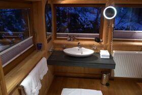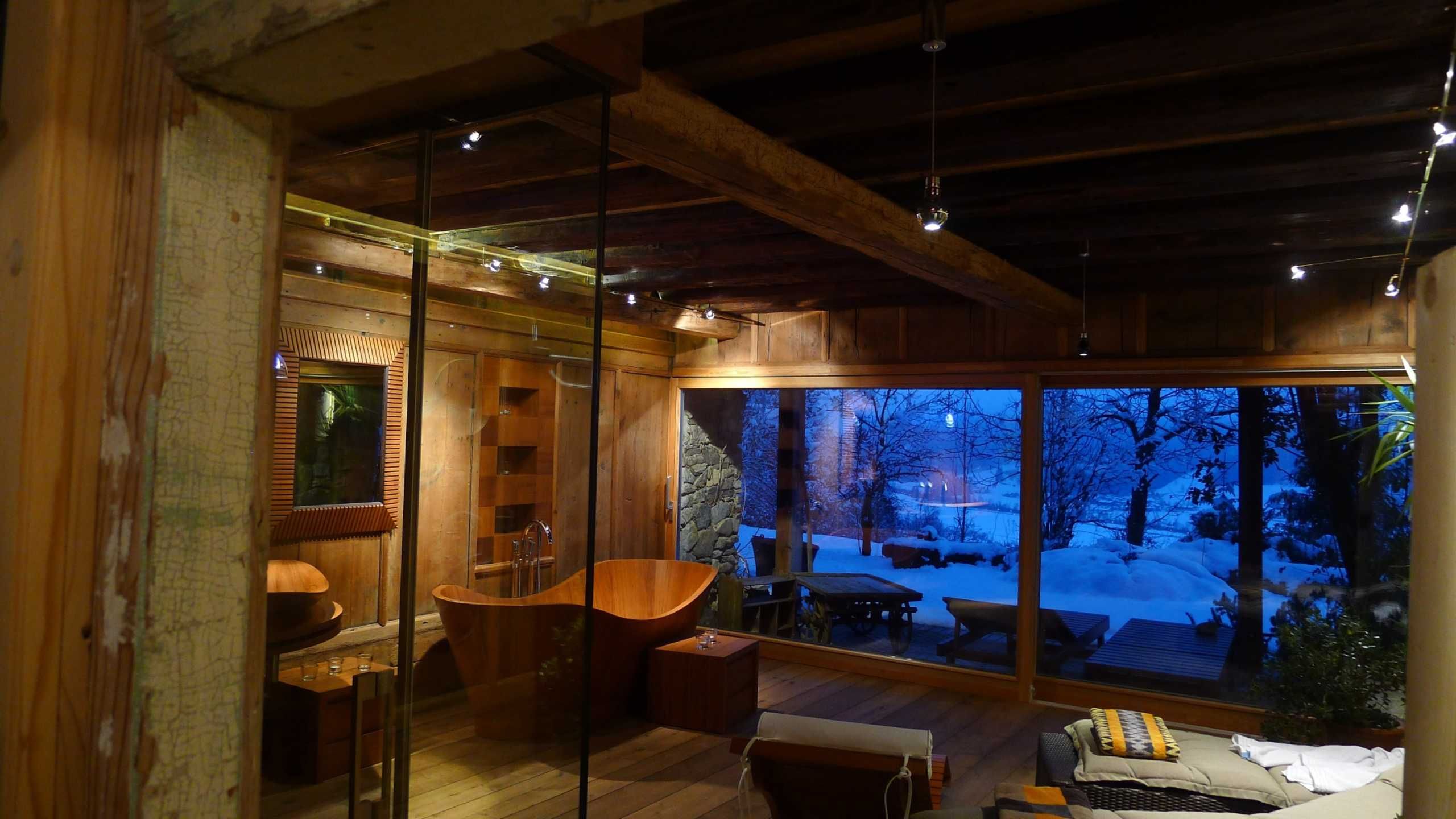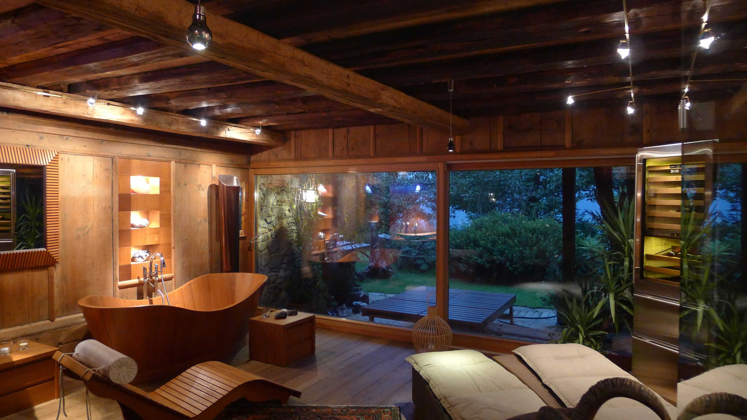 Es erstreckt sich über insgesamt 165 m² und ist eine einzigartige Kombination aus gereiftem Naturholz und ausgeklügelter Technik. Es verfügt jeder Raum über einen eigenen Temperaturregler und der Großteil der Beleuchtung ist mit Dimmer ausgestattet.