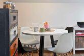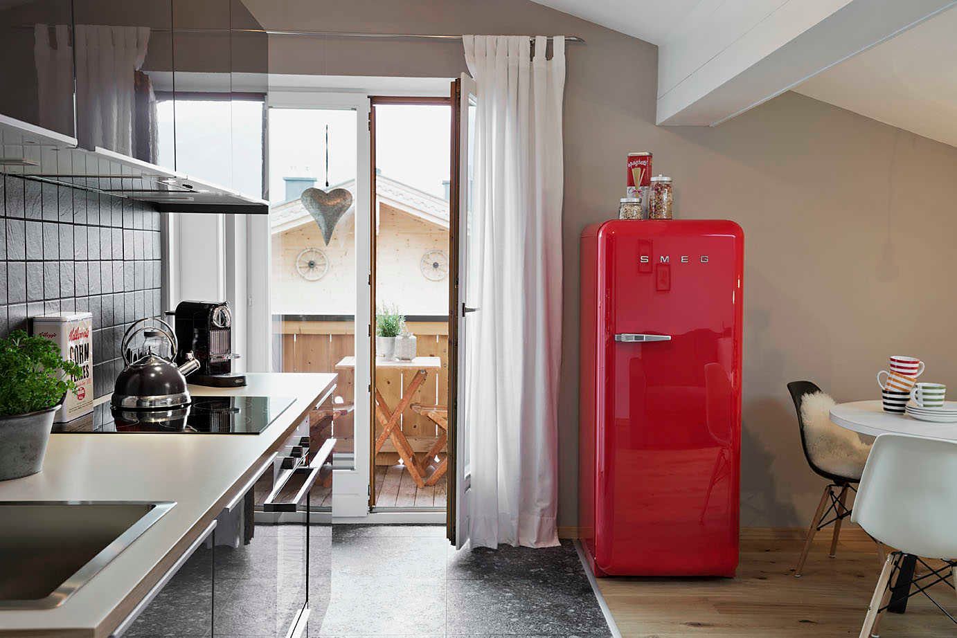 • Voll ausgestattete Wohnküche mit ausziehbarem Schlafsofa und Esstisch, E-Herd mit Backofen, SMEG-Kühlschrank, Toaster, Wasserkocher, Nepresso-Kaffeemaschine (inkl. einer Packung Nespresso-Kapseln), Geschirrspüler