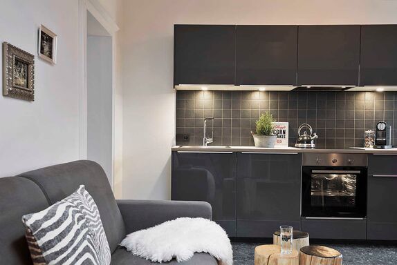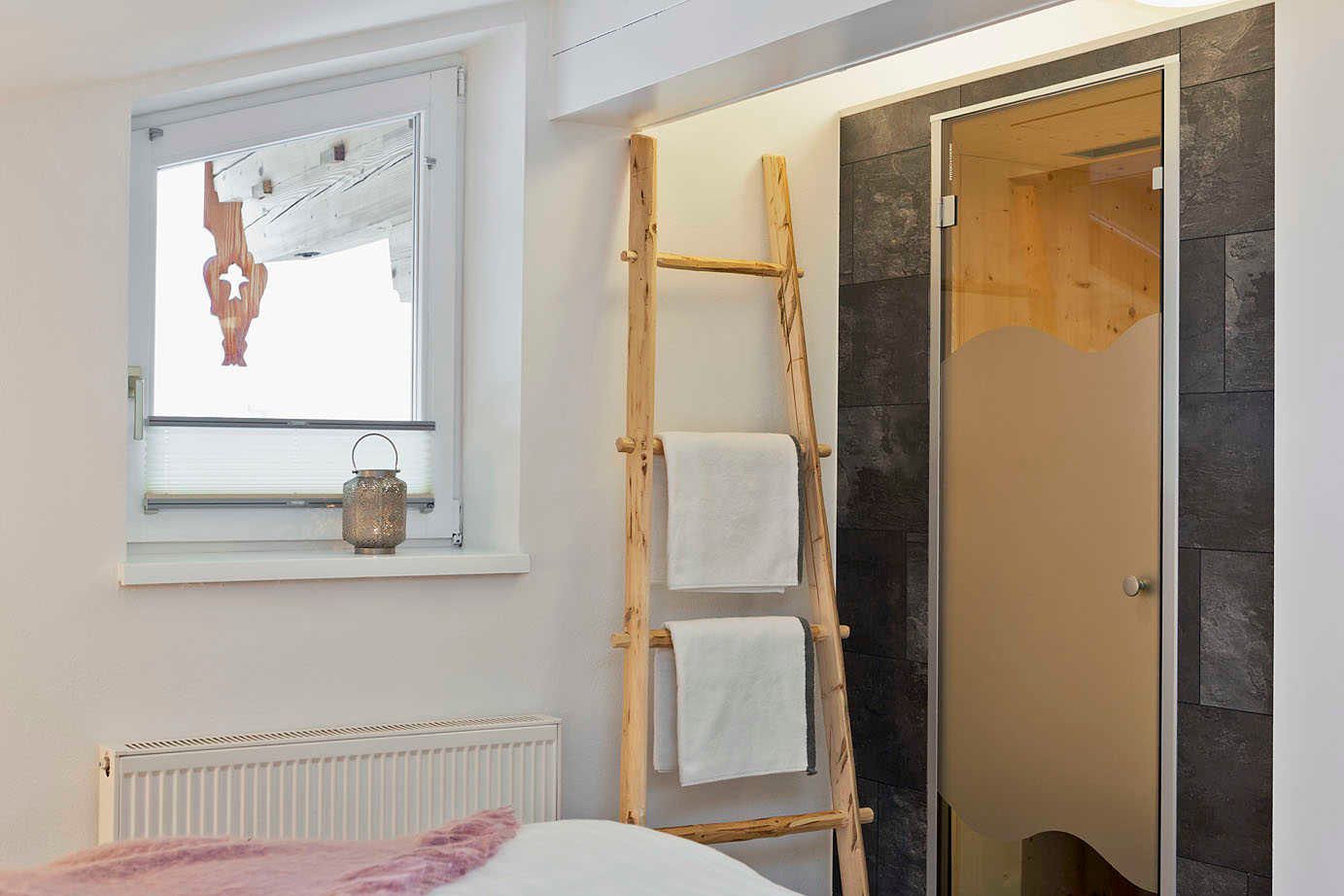 Das Apartment # 4 ist klein und dabei so fein. Nicht zuletzt, weil es mit einer eigenen Infrarotkabine sogar Platz für ganz private Wellnessgenüsse lässt. Du kannst es dir hier aber auch einfach im kuscheligen Bett oder in der Wohnküche gemütlich machen. Dieses Urlaubszuhause ist ideal für zwei. Und sollten dich doch kleine Kids begleiten, kann die Wohnküche dank ausziehbarer Couch ruckzuck in ein „Kinderschlafzimmer“ verwandelt werden.