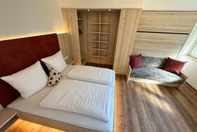 - Schlafzimmer mit Doppelbett, ausklappbarem Doppelbett und Sat-TV