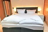 - Schlafzimmer mit Doppelbett, Sessel und Sat-TV