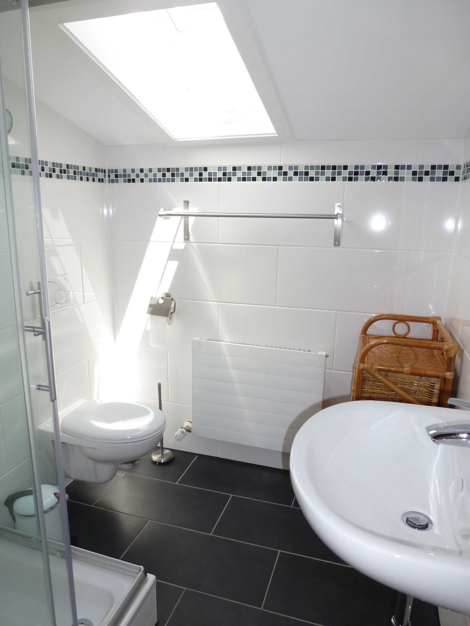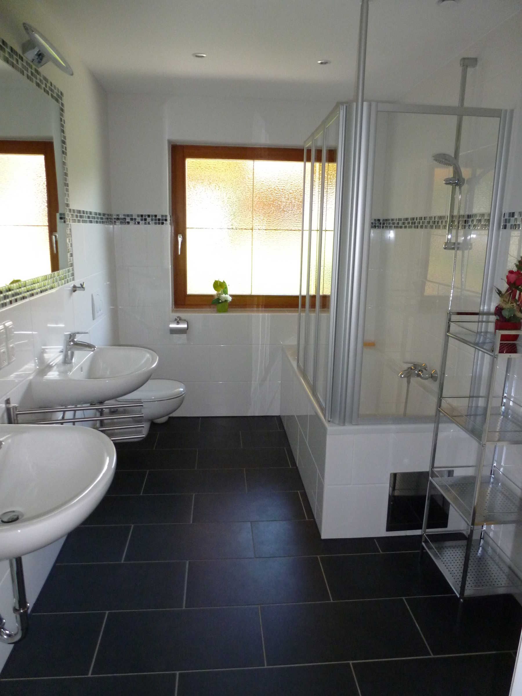 - Bad mit Badewanne, WC und 2 Waschbecken