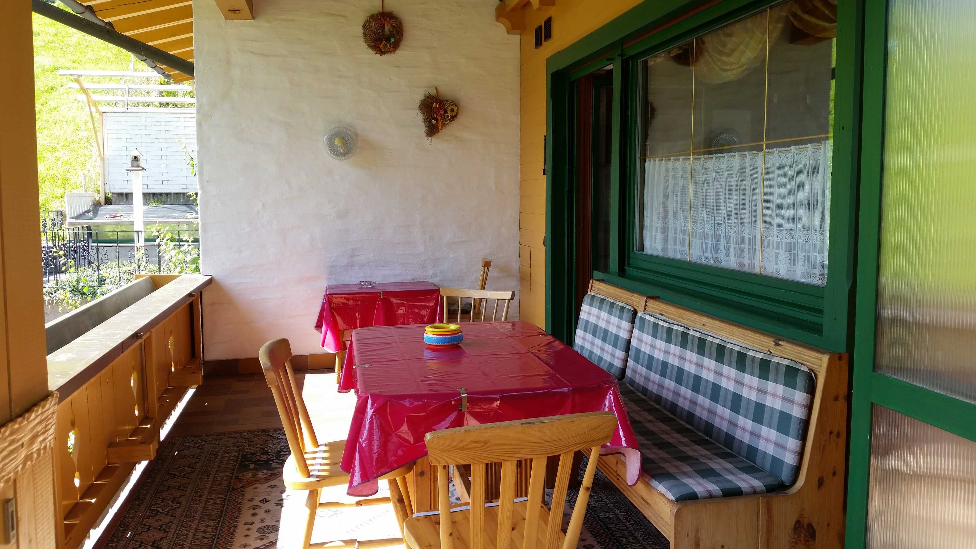 - Großer Balkon mit Holzbank, großem Tisch und Stühlen sowie sehr schöner Panoramasicht