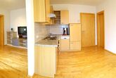 - Wohn-/Schlafraum mit Boxspringbett (160 x 200), Küchenzeile mit Kühlschrank ohne Gefrierfach, Geschirrspüler, 4-Platten-Herd, Backofen, Dunstabzugshaube, Kaffeemaschine, großzügiger Essbereich und Sat-TV