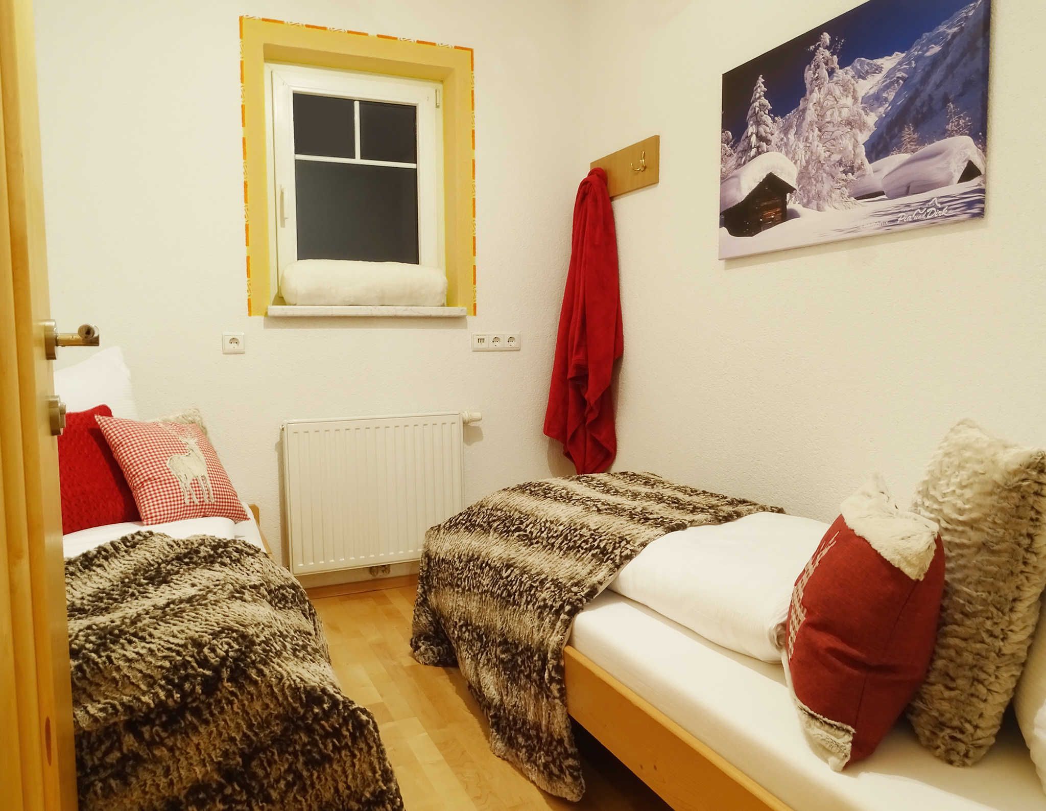- kleines Schlafzimmer mit 2 Einzelbetten auf der Etage