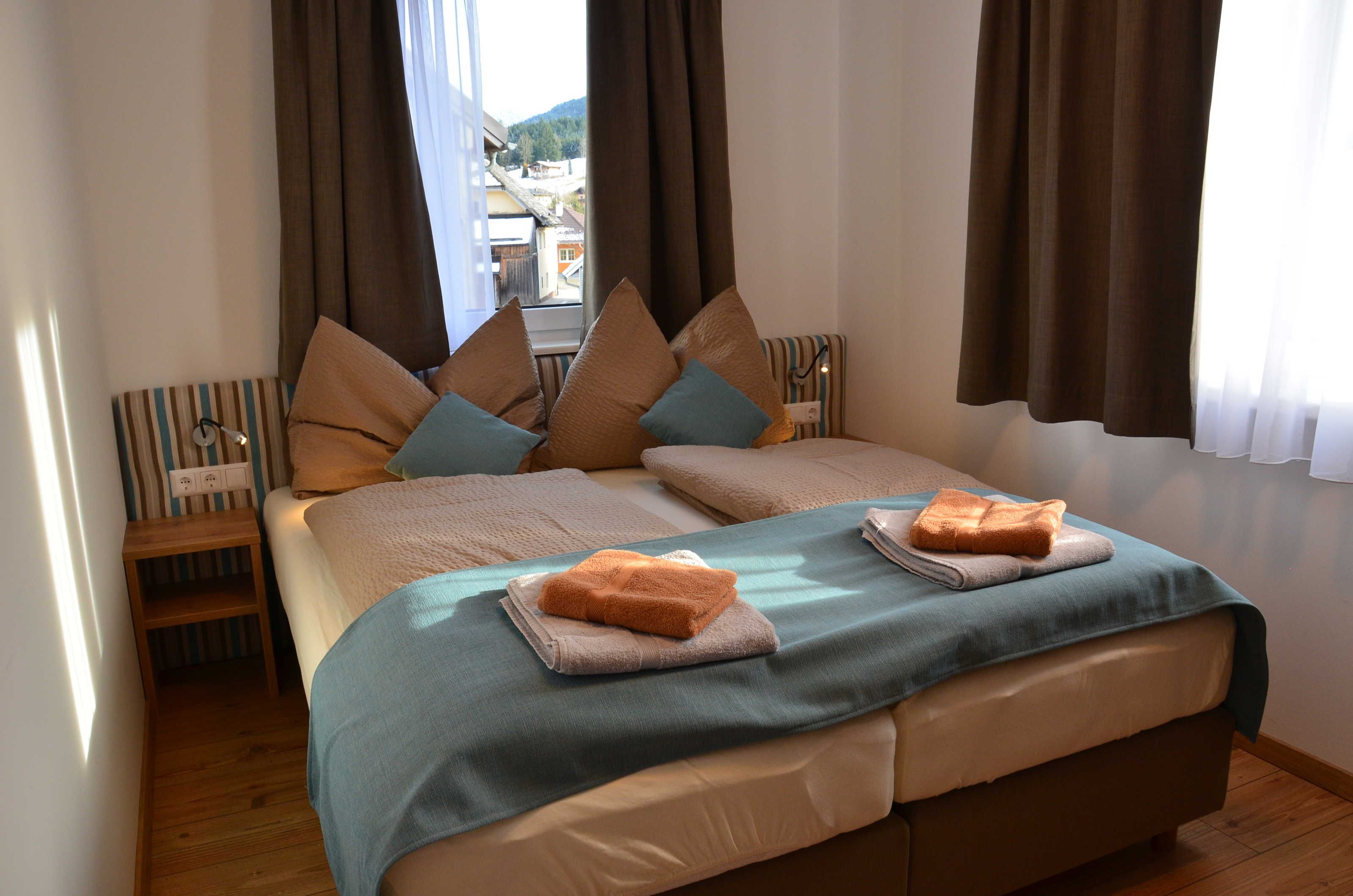 Das Appartement befindet sich auf dem 1. Stock und verfügt über eine gute Blick auf die Piste. Das gemeinschaftliche Wohnzimmer hat eine reich ausgestattete offene Küche mit einem großen Esstisch um gemütlich mit einander zu speisen. Es gibt ein Elternschlafzimmer mit TV und ein Schlafzimmer mit einem Einzelbett und einem Stockbett, 1 Badezimmer mit Dusche und 1 getrennte Toilette. Bettwäsche und Handtücher sind vorhanden. Für die Mieter dieses Appartement ist 1 Parkplätze auf dem eigenen Gelände reserviert.