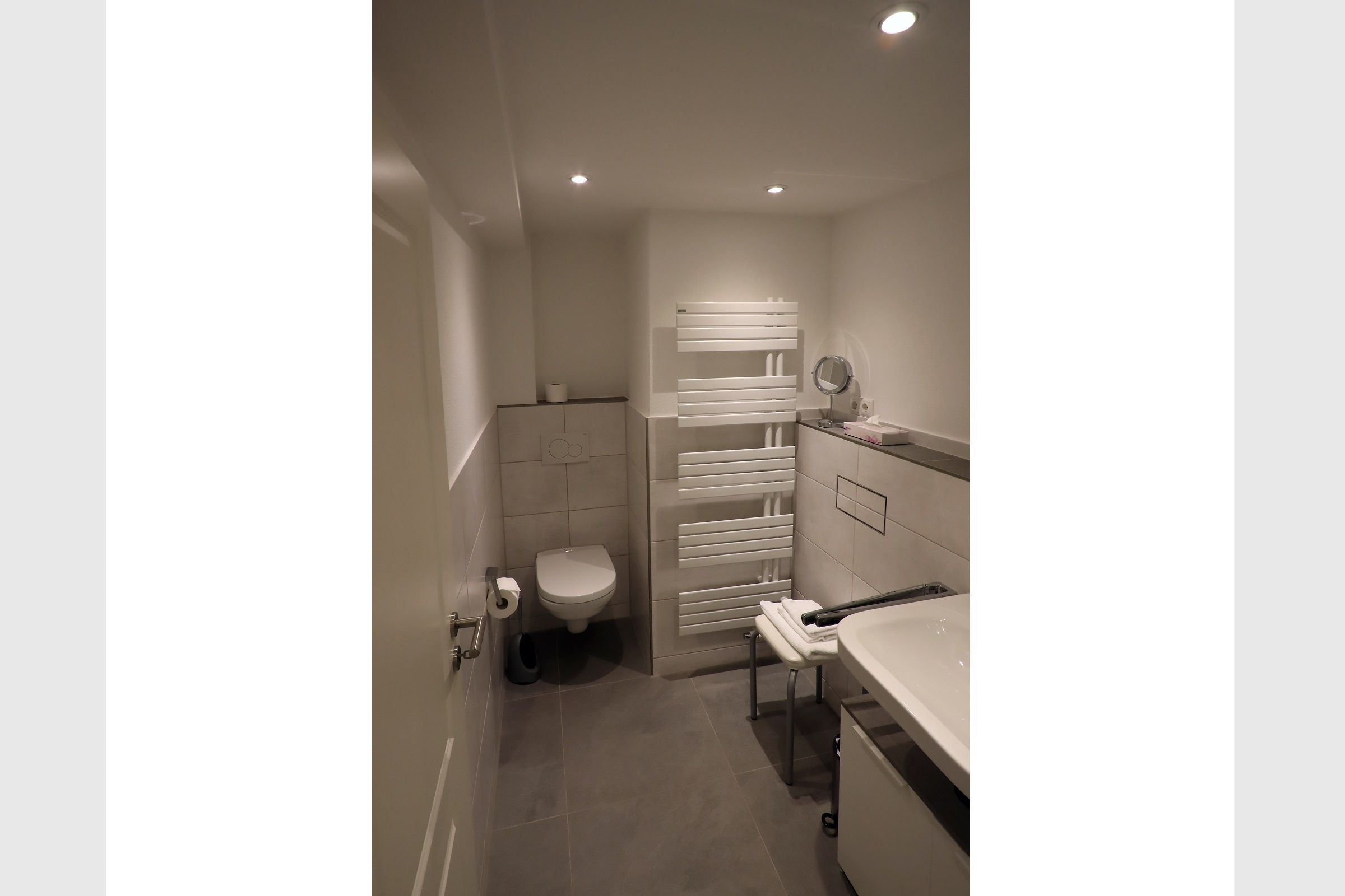 • Bad mit Walkin-Dusche, Waschbecken, Toilette, Haarfön
