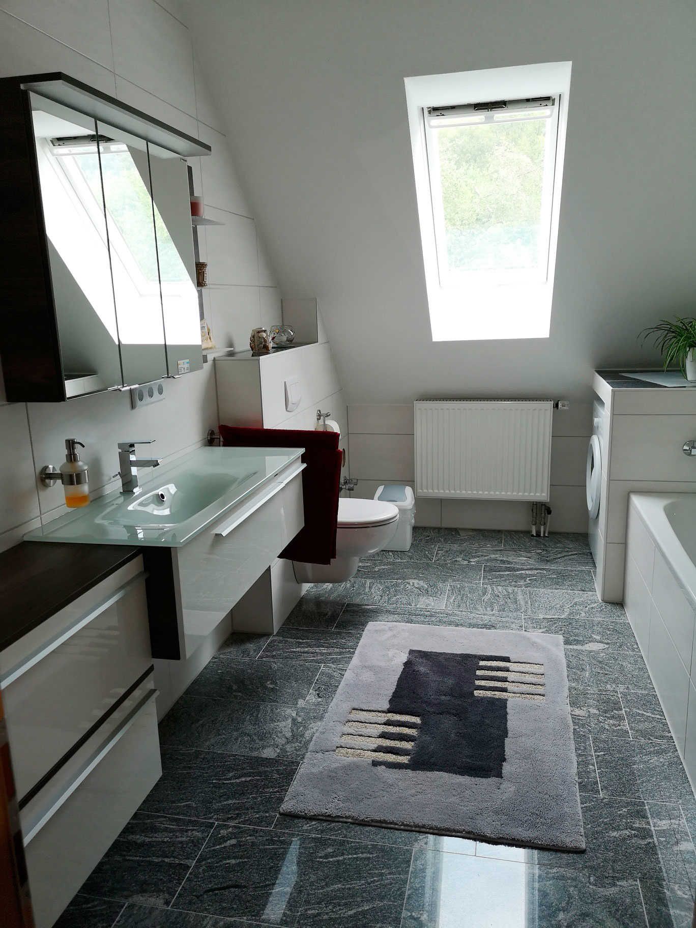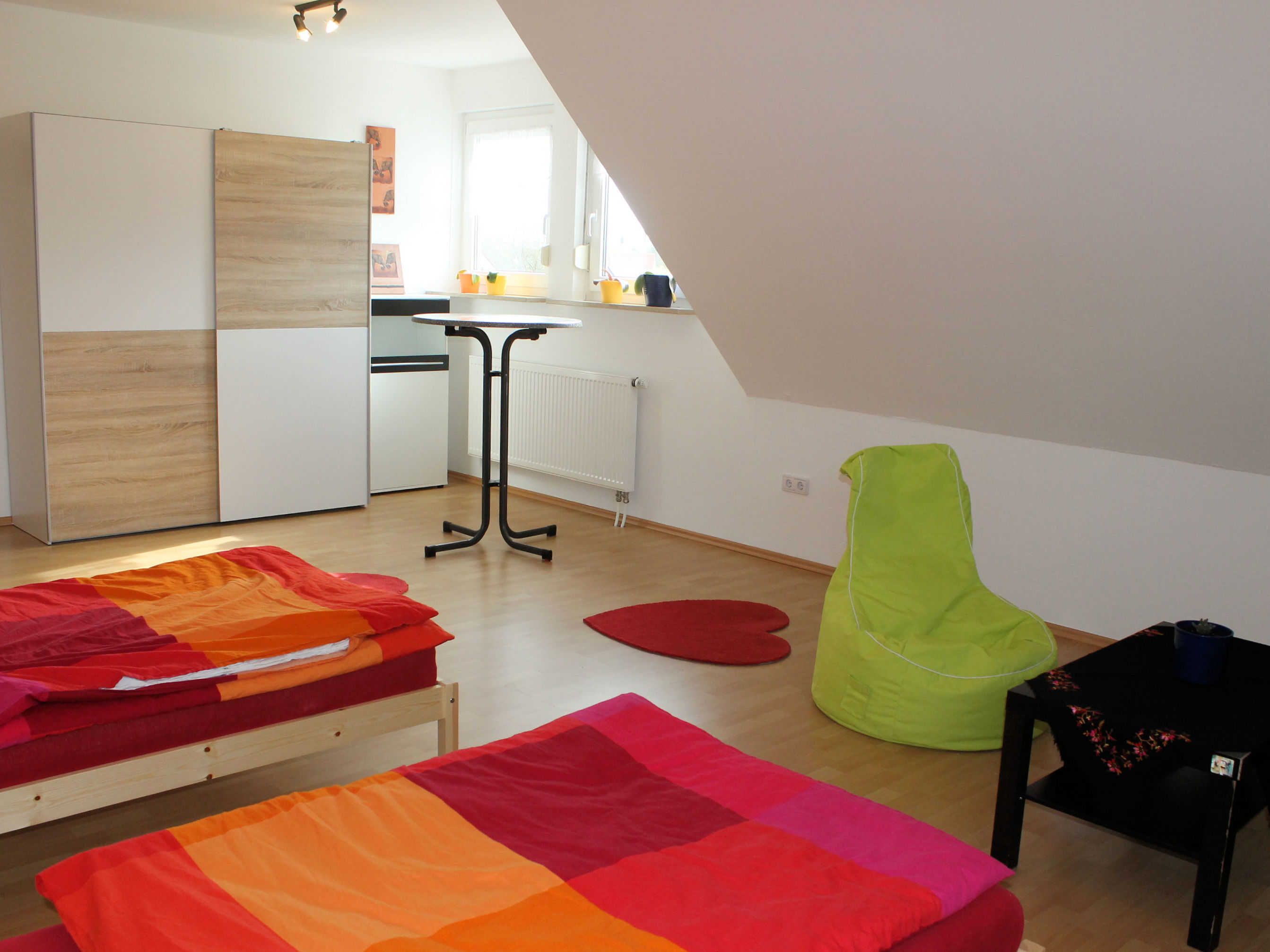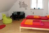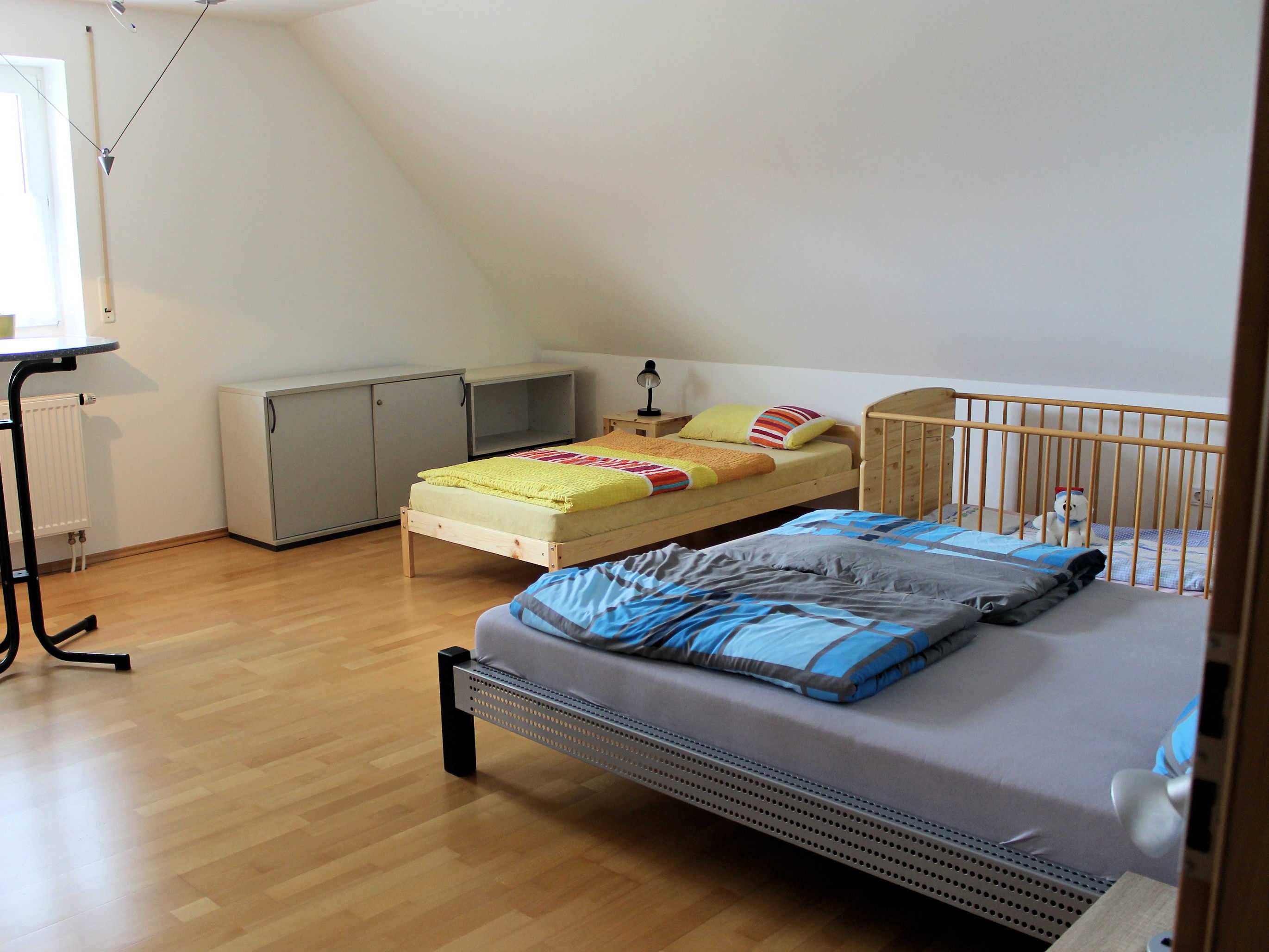 Sie suchen eine familienfreundliche großzügige Ferienwohnung - modern geschnitten und ausgestattet. Ob Urlaub mit Kleinkindern, Teens oder jeder Altersgruppe dazwischen. Die Ferienwohnung Walberlablick befindet sich am Rande eines verschlafenen Dorfes mit urigen Gasthäusern. Und mit einem wunderschönen Blick auf die Ehrenbürg, auch Walberla oder Berg der Franken genannt. Die Ferienwohnung befindet sich im Dachgeschoss eines auf Anhöhe liegenden Zweifamilienhauses. Parken direkt auf dem Grundstück, mit eigenen Gelände und Gartenanlage, dieses ist abschließbar. Der große Gartenbereich wird vielfältig genutzt, es kann gegrillt werden und es gibt verschiedene Sitzmöglichkeiten auch unter Dach. Für Kinder ist bestens gesorgt, u. a. mit einer Kinderschaukel in Grünanlage und verschiedenen Tieren wie Hühner, Hahn, Enten, Gänse, Tauben, Forellen(-weiher). Da wir ländlich liegen, fehlt es auch nicht am Gemüsebeet, an diesem dürfen sie sich gerne bedienen! Ein abschließbarer Fahrradraum steht Ihnen ebenfalls zur Verfügung.