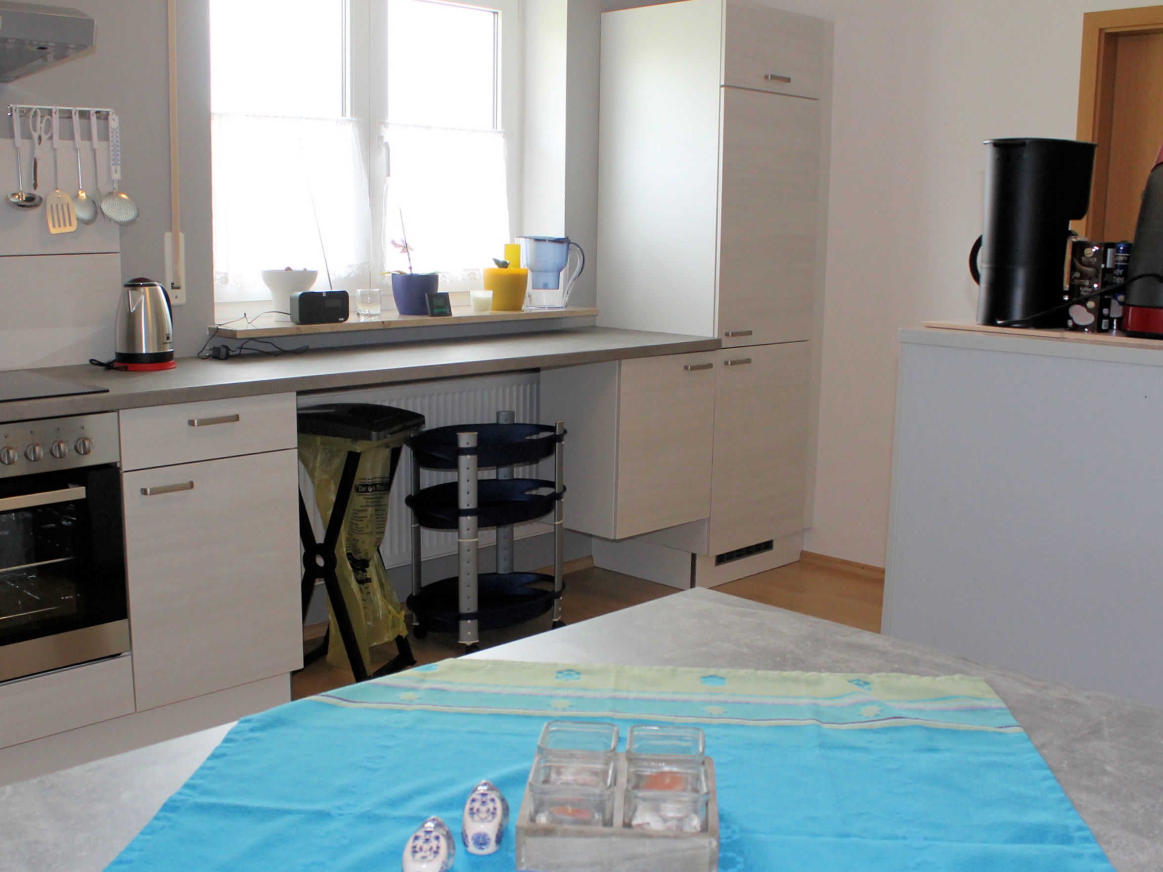 Unsere neu renovierte Ferienwohnung ist eine Nichtraucherwohnung im ersten Stock. Ein Raucherbereich ist vor dem Haus aber vorhanden. Es erwartet Sie gemütliches Wohnzimmer mit TV und Sofa und Essecke, eine separate vollausgesatte Küche, 1 Schlafzimmer mit 2 Einzelbetten und einer zusätzlichen Sitzgruppe. Eine Aufbettung durch ein weiteres Zustellbett ist möglich. Im zweiten Schlafzimmer befindet sich ein Einzelbett und ein 140er Bett. Auf Wunsch kann hier ein Kinderbett mit aufgestellt werden. Die Fewo verfügt über ein Badezimmer mit Badewanne, Dusche und WC und ein separates WC mit Waschbecken und Waschmaschine. Ein Staubsauger, Putzutensilien sowie eine Erstausstattung an Toilettenartikel ist vorhanden. WLAN steht kostenfrei zur Verfügung. Auf Wunsch kann der Trockner im Keller benutzt werden.