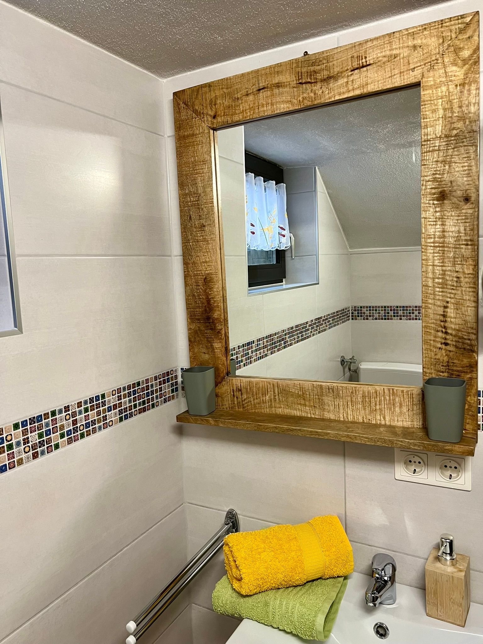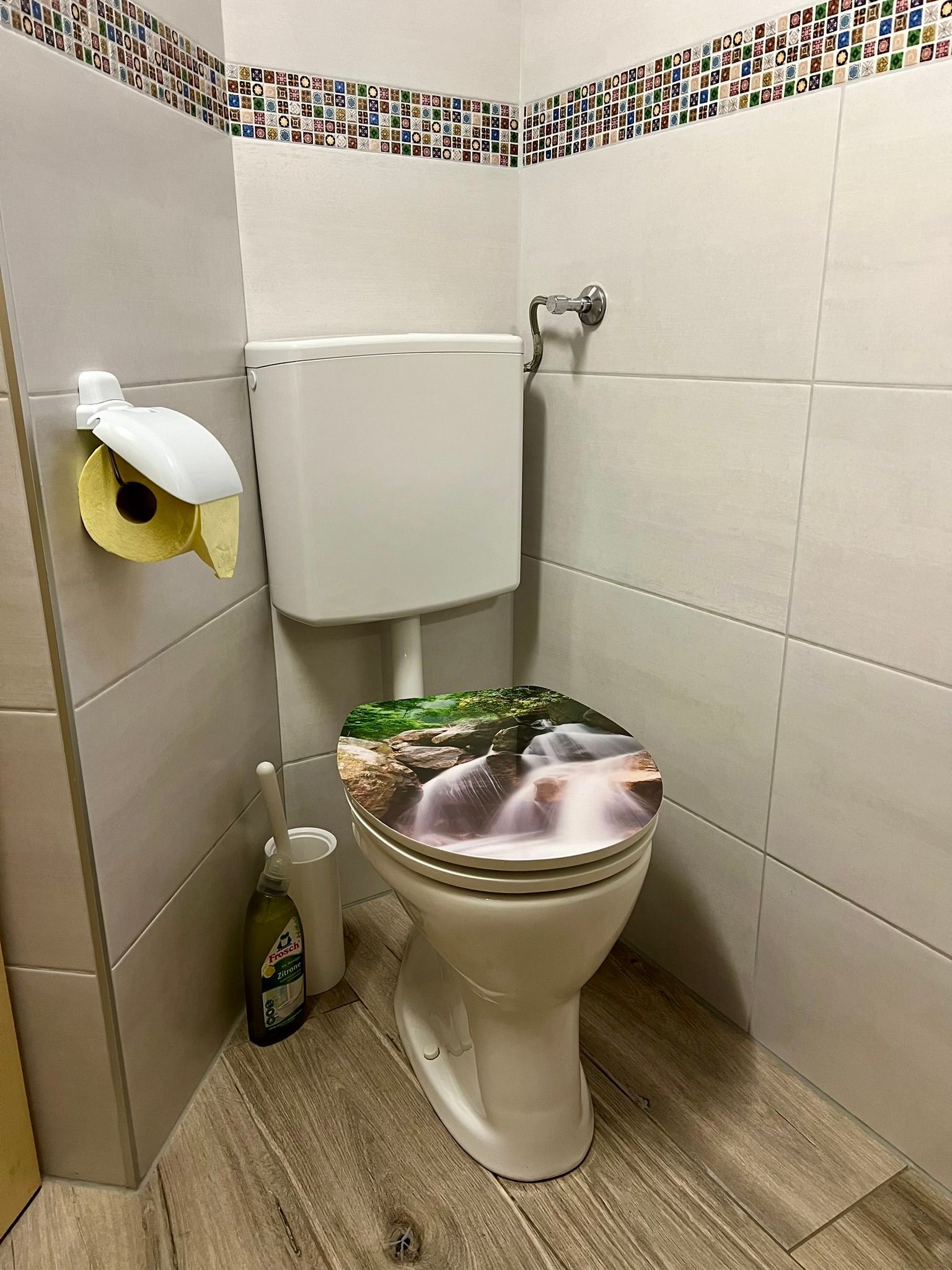 WC mit Waschbecken, Bodenheizung, Boiler und Spiegel