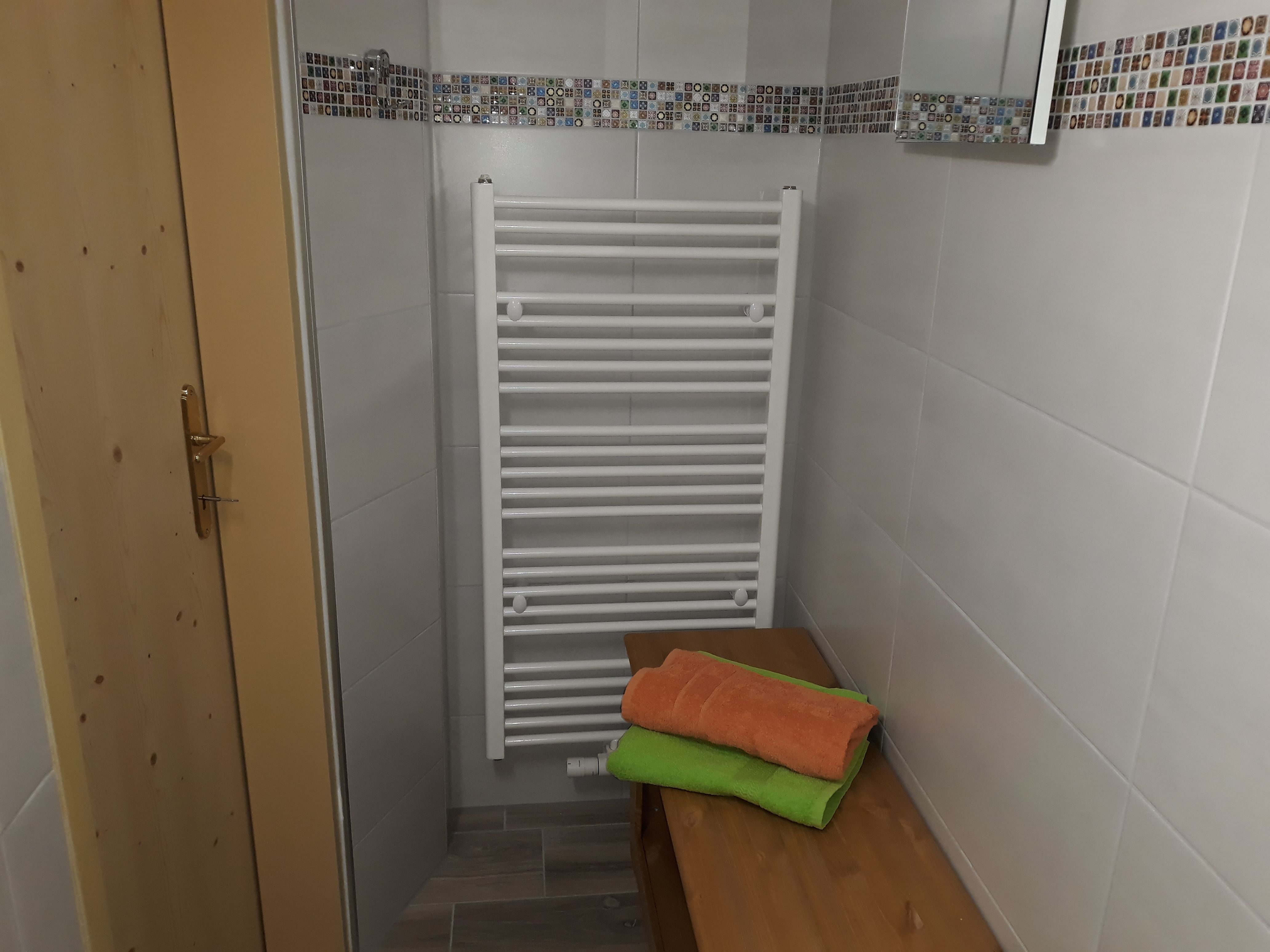Dusche barrierefrei, mit Heizkörper und Bodenheizung