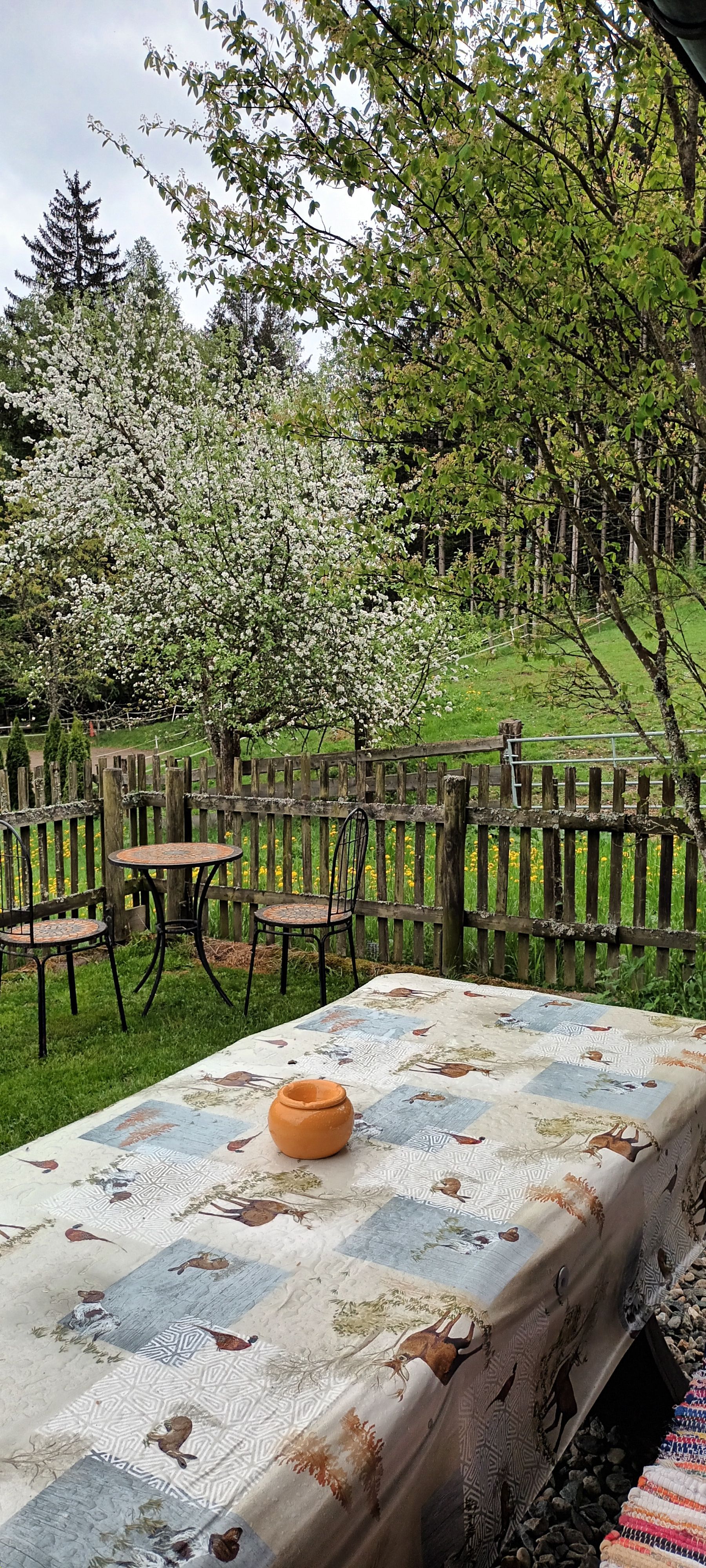 Im umzäunten Garten rund um die Hütte laden Bänkchen zum Sonnensitzen ein und ganz nebenbei kann Ihr Hund sich so richtig austoben. Die große Garage ist gratis benutzbar und in der Holzhütte lagert genug Brennholz für lange Grillabende oder Kachelofenfeuer.