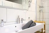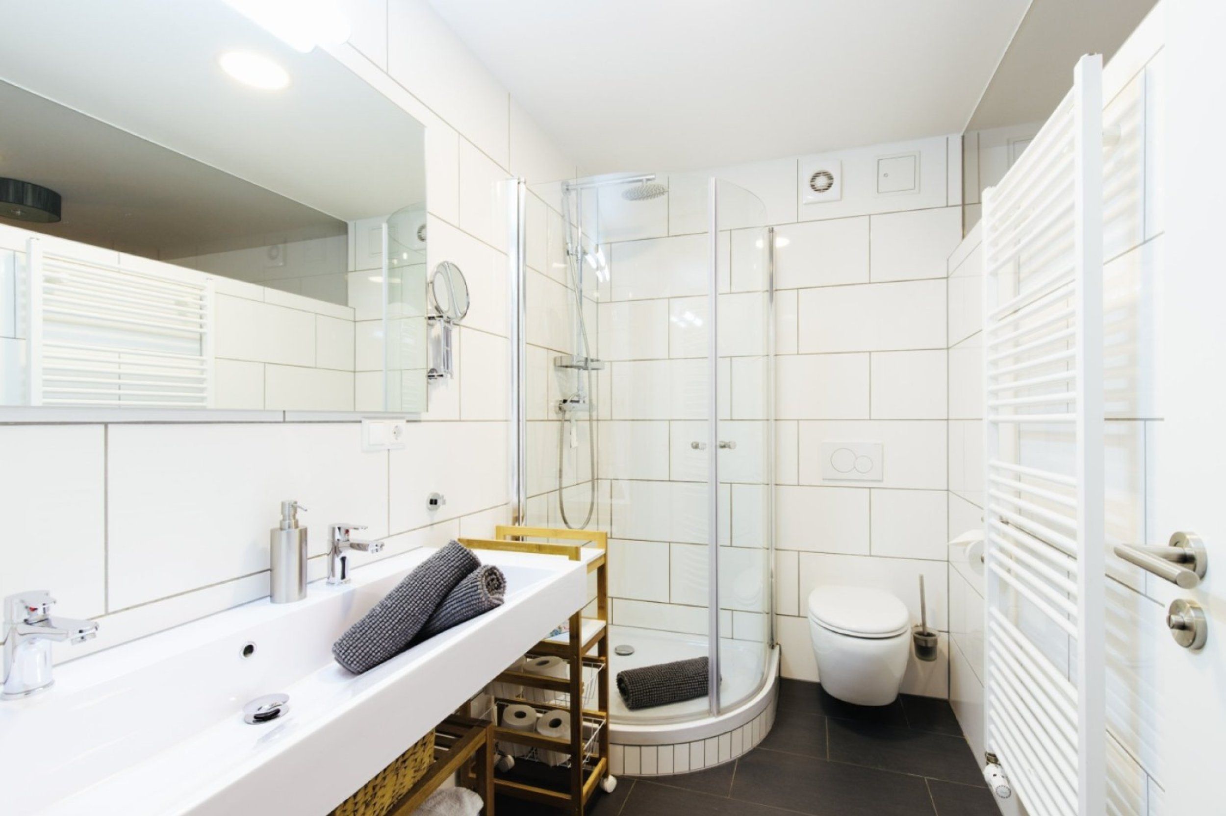 Alle Wohnungen mit Balkonen bzw. Terrasse, jede Wohnung einzigartig, traditionelle Elemente kombiniert mit modernem Design, gut ausgestattete Küchen mit Spülmaschinen, z.T. Induktion, Betten mit Bandscheibenmatratzen, Bäder mit Wanne (außer in W2) und separater Dusche.