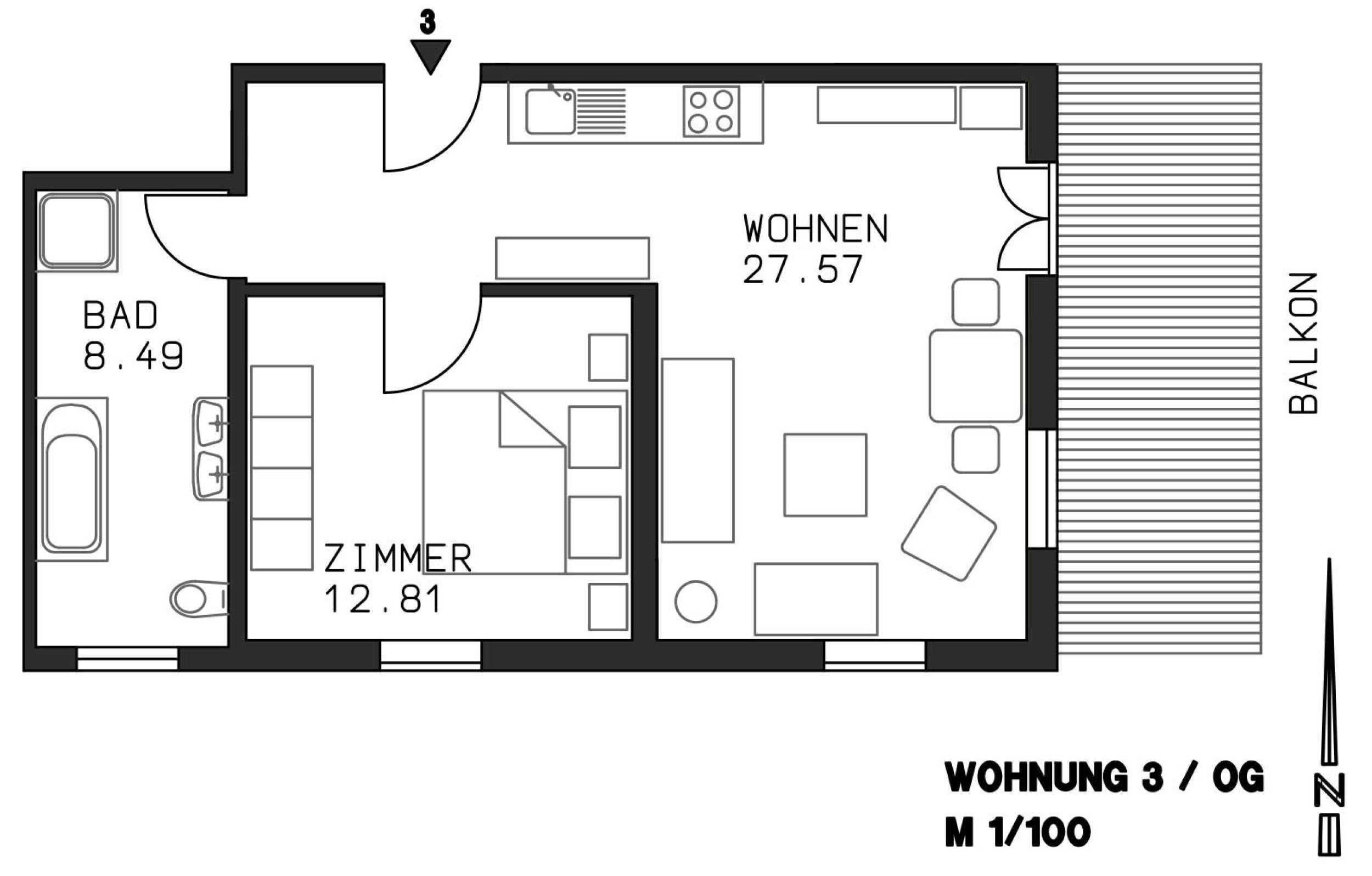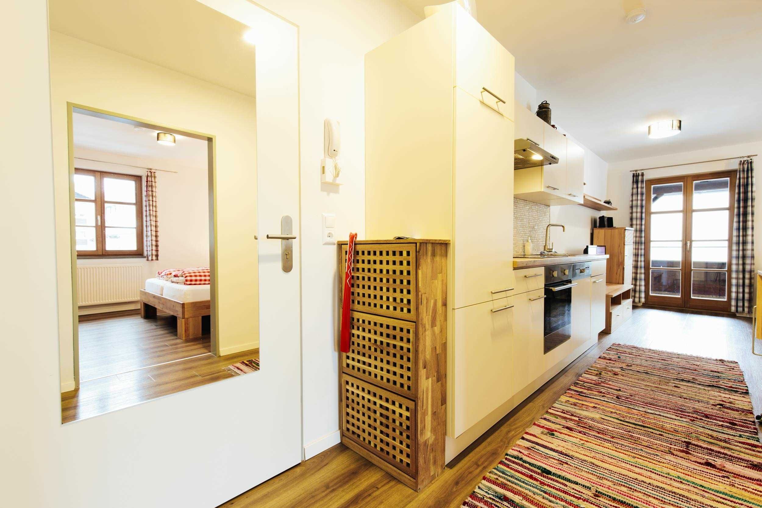2 Zimmer Ferienwohnung mit 49 m² für 1 bis 2 Personen, 2 Räume mit 1 Schlafzimmern, 1. Obergeschoß, Balkon, Bergsicht, Kinderzustellbett/-hochstuhl auf Anfrage möglich