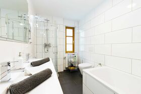Alle Wohnungen mit Balkonen bzw. Terrasse, jede Wohnung einzigartig, traditionelle Elemente kombiniert mit modernem Design, gut ausgestattete Küchen mit Spülmaschinen, z.T. Induktion, Betten mit Bandscheibenmatratzen, Bäder mit Wanne (außer in W2) und separater Dusche.